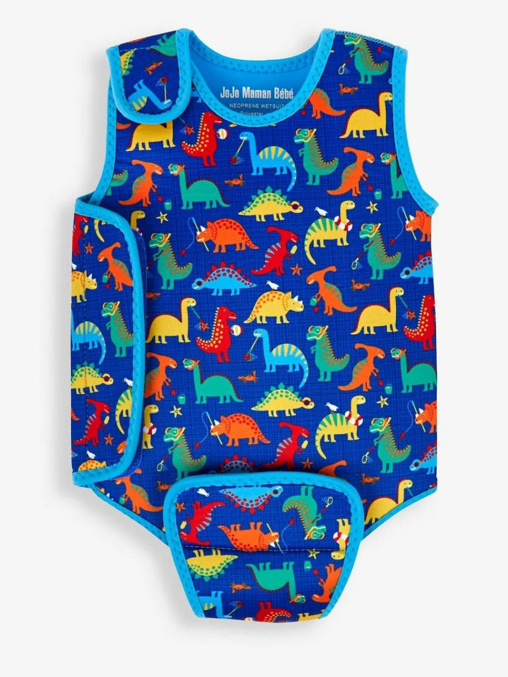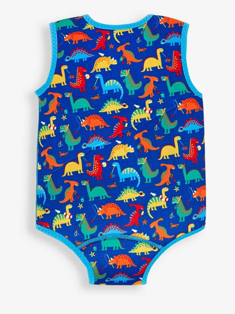 We know that a warm baby in the water is a happy baby, which is why we developed our baby wetsuit. A blue Dinosaur Print Baby Wetsuit features a flexible, comfortable fit and thick fabric that keeps little ones warm so they can stay in the water for longer. This wrap-around style diaper is adjustable with Velcro™ fastening, and it opens completely flat for easy diaper changing, making it even more convenient. All-over dinosaur print Keeps babies warmer for longer Opens up completely for easy changing Wraps around the body Velcro™ fastening 100% Polyester Neoprene Hand wash only Do not tumble dry Do not iron Do not dry clean Rinse by hand in 30-degree water immediately after use and allow to dry out of sunlight to avoid discolouration Hand wash only. Main 100% Polyester. Inner 100% Polyester.