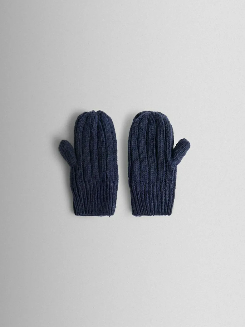 A sprinkle of snow? Off we go go! Our mittens will keep your little one’s hands cosy with a rib knit cuff to provide extra warmth and a snug fit. They’re soothingly soft on hands, perfect for snowball fun, frosty adventures, or chilly strolls to the park — these mittens are a winter win! Lightweight yet super cosy and breathable Navy blue colour Ribbed cuff for extra snug factor Machine washable Main 100% Recycled polyester. Lining 100% Recycled polyester.