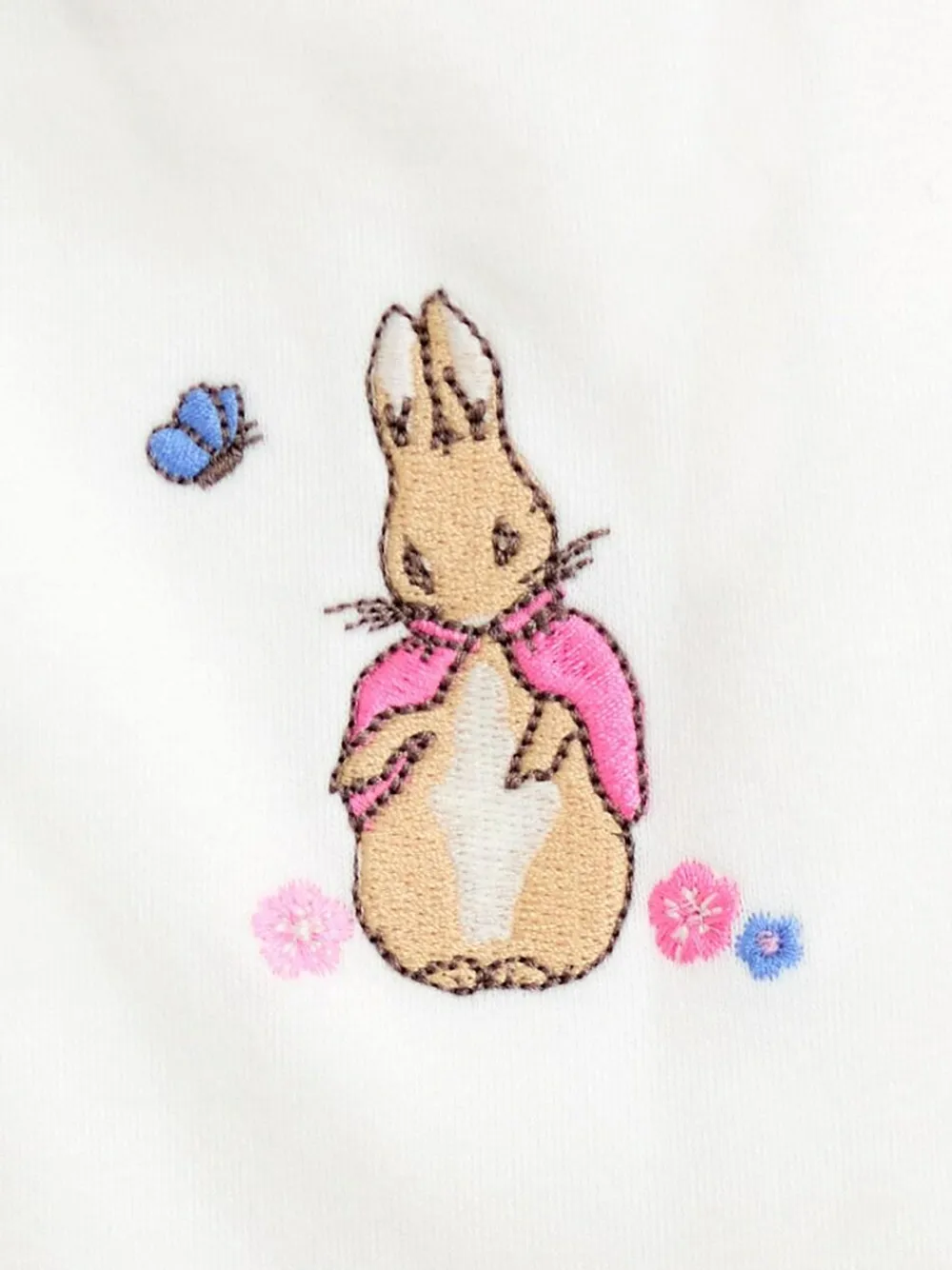 For sweet giggles and little dribbles, This handy 3-pack of Flopsy Bunny Bibs are the perfect accessory for messy dribbles and toothless giggles. With Flopsy Bunny sitting across one, all three sisters on another and one with a floral ditsy print, these cute cotton bibs have a hook and loop fastening, and gentle soft fabric, making this an ideal gift for babies. Looking for a complete set? We have matching items available too!. 3-pack set. Ideal gift. Baby-safe hook and loop fastening. Machine washable. Main 100% Cotton. Lining 80% Cotton, 20% Polyester. Upper Lining 100% Cotton.