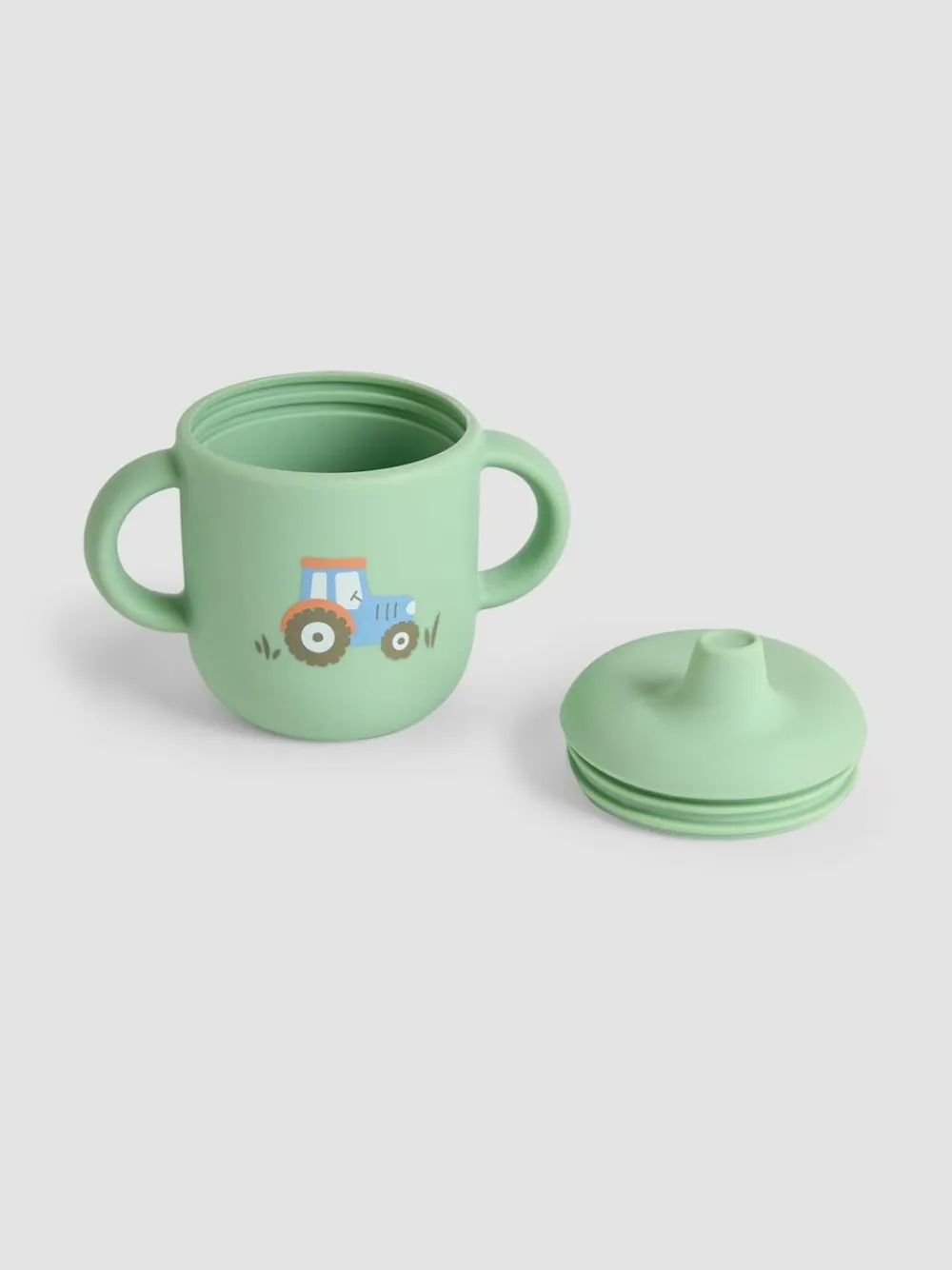 Sips, dribbles, licks and giggles – as your little one weans, give them a sense of independence with this Silicone Sippy Cup. This cup has two handles that are perfect for tiny hands and is made from high-quality FDA food-grade silicone, which is soft on gums. With a stable base to prevent tipping and a secure lid for spill-free sipping, this cup is a great choice for your child. Made from food-grade silicone. Stable base to prevent tipping and spills. Tractor print. Easy to grip handles. Secure lid. Dishwasher safe. Suitable for babies and toddlers.