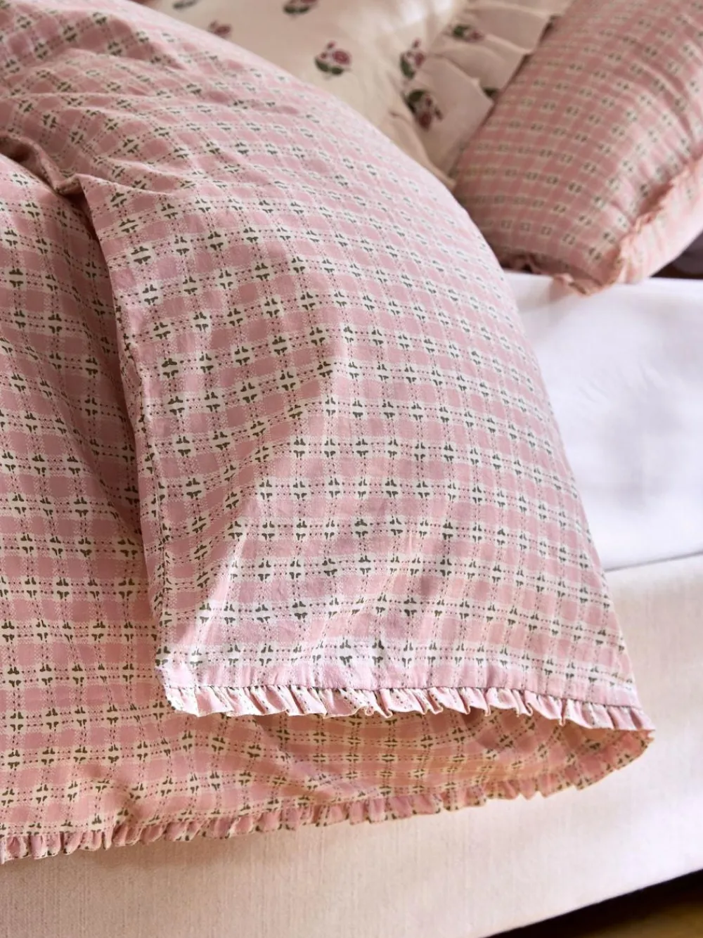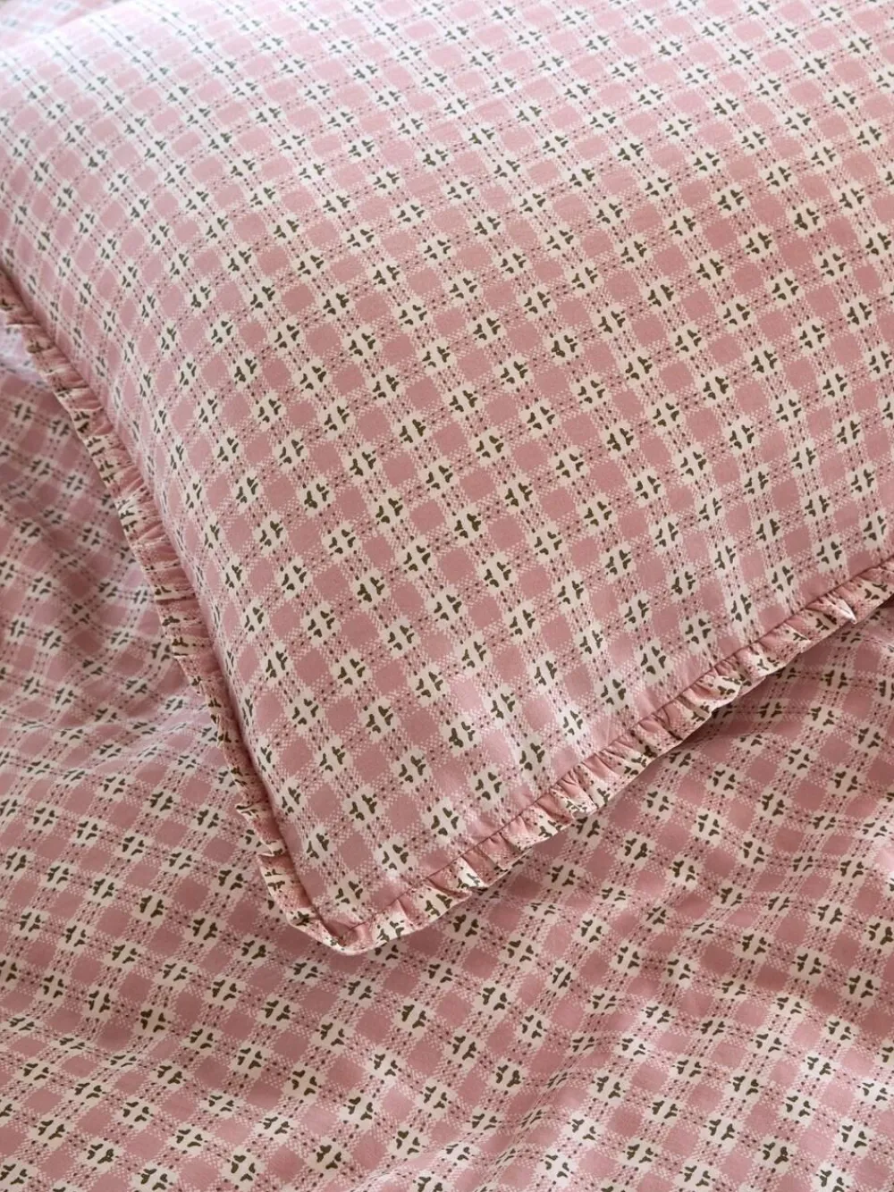 Laura Ashley Pink Cresswell Gingham 100% Cotton Duvet Cover and Pillowcase Set^ Branded Bedlinen