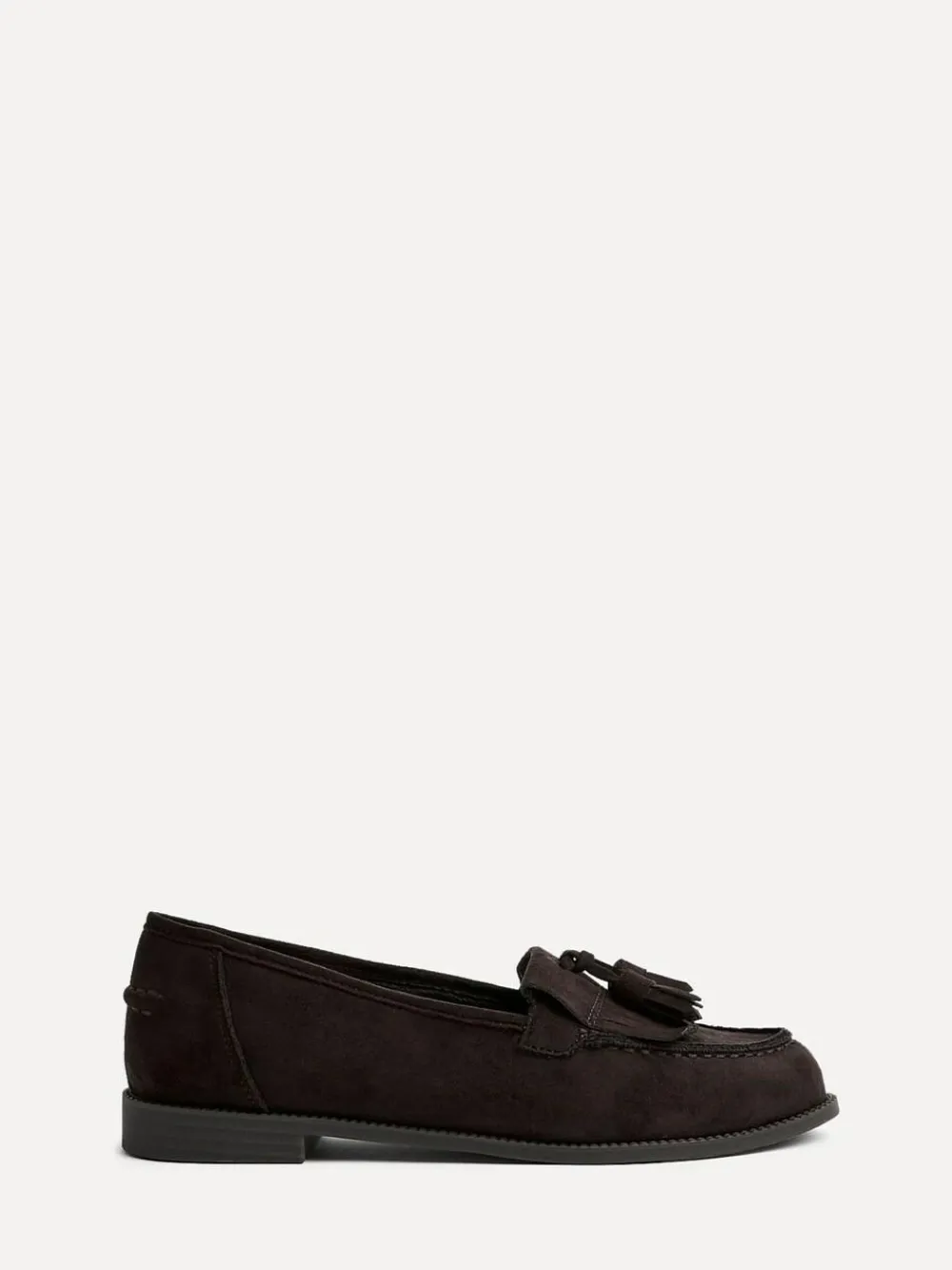 Our Rosemary classic slip-on loafers offer a touch of sophistication to any outfit. The timeless tassel detailing adds a refined touch along with a cushioned in-sock, perfect for those looking for premium footwear. Exude effortless style and elegance with this exclusive pair. Heel height 1cm. Main – 100% Other fibres. Lining – 100% Other fibres. Sock – 100% Other fibres.
