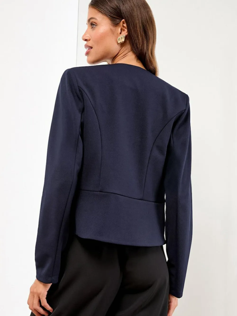 Lipsy Navy Blue Cropped Collarless Blazer^Women Blazers|Suits & Tailoring