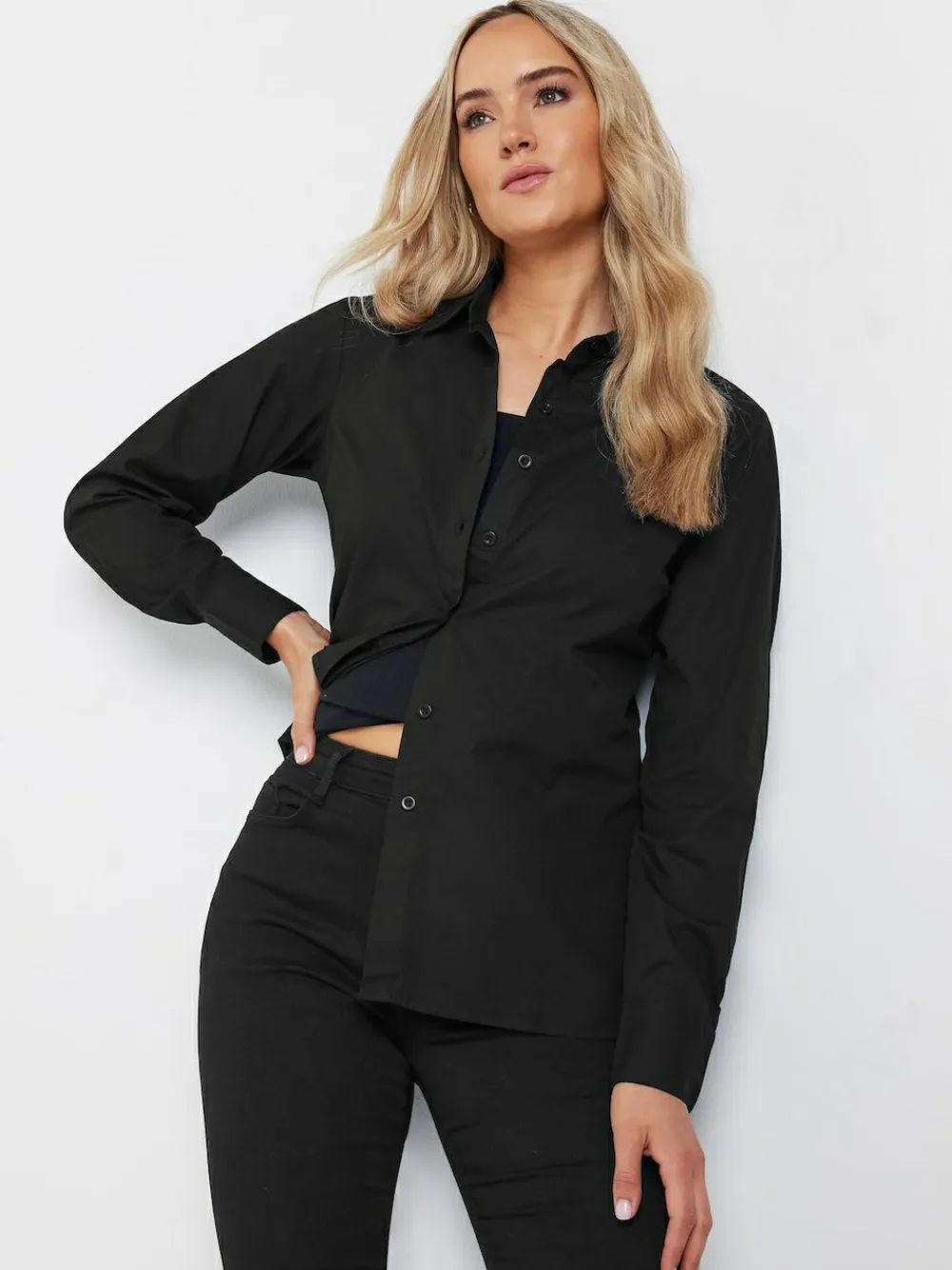 Long Tall Sally Black Fitted 100% Cotton Shirt^Women Blouses & Shirts
