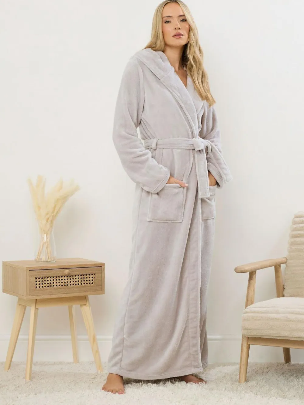Fit & Fashion Notes: Enter this cosy season with the perfect cosy essential. Made from a soft fleece fabric, this dressing gown features a hood, belt tie, and completes at a maxi length. Wrap over any pyjama set for an added layer of warmth! Features: Luxury soft Maxi length Hooded Belt tie Front pocket pouches Made from a soft fleece fabric 100% polyester Machine washable Model is 5’11”/180cm and size UK 10/EU 38. Machine washable. 100% Polyester.