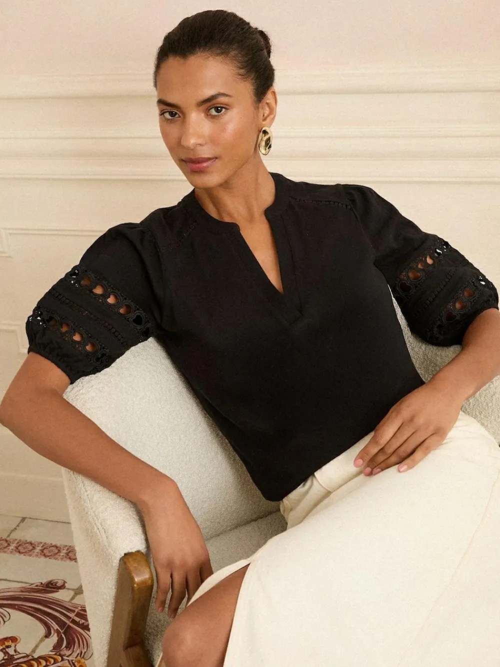 This Love & Roses T-Shirt is an elevated essential for stylish summer wear. The comfortable jersey fabric is beautifully detailed with intricate heart lace inserts on the sleeves, adding a feminine touch. The flattering V-neck and chic elbow-length sleeves make this the perfect top for a light, casual daytime look. Heart lace insert sleeve Jersey fabric V-neckline Elbow length sleeves 100% Cotton.