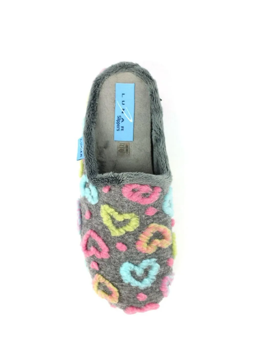 Slide into the Valentine’s super comfy grey slippers. Constructed from soft textiles and lining, these slippers are a treat for your feet. With easy slip-on and off thanks to the mule design, this slipper will be your new sole-mate. Decorated with a delightful heart pattern, the Valentine combines style and comfort effortlessly. Main – 100% Textile. Lining – 100% Textile. Sole – 100% Synthetic rubber.