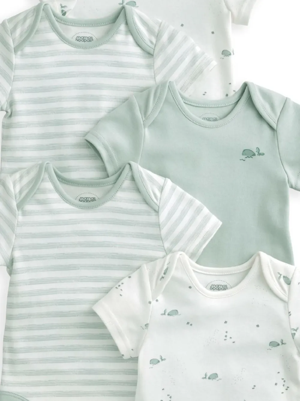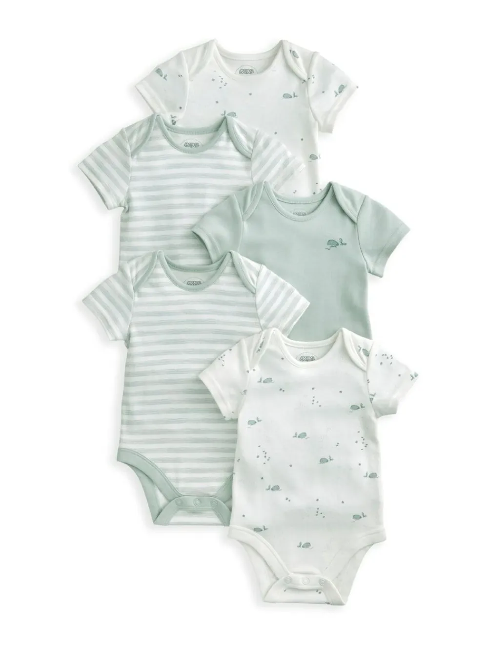 Mamas & Papas Blue 100% Cotton Whale Short Sleeve Bodysuits 5 Pack^BOY Bodysuits & Vests|Vests