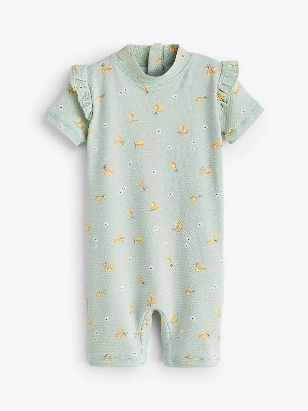 Mamas & Papas Green Lemon Print Textured Short Sleeve Rashsuit^ Swimwear|Swimwear
