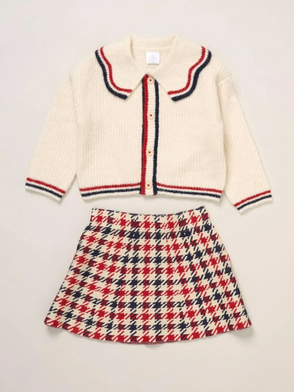 Miss True Knit White Cardigan with Check Skirt^ Shorts & Skirts