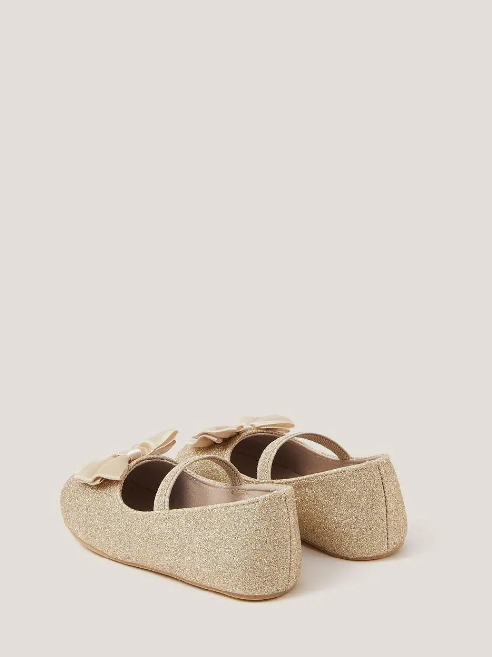 Dress them like their favourite dolly. Sparkling with every step (or crawl), these walkers are doused in glitter with a sweet satin bow to the front. Finished with an elastic strap to keep their wriggly toes in place. Outer – 100% Polyester. Lining – 100% Polyester. Sock – 100% Rubber.