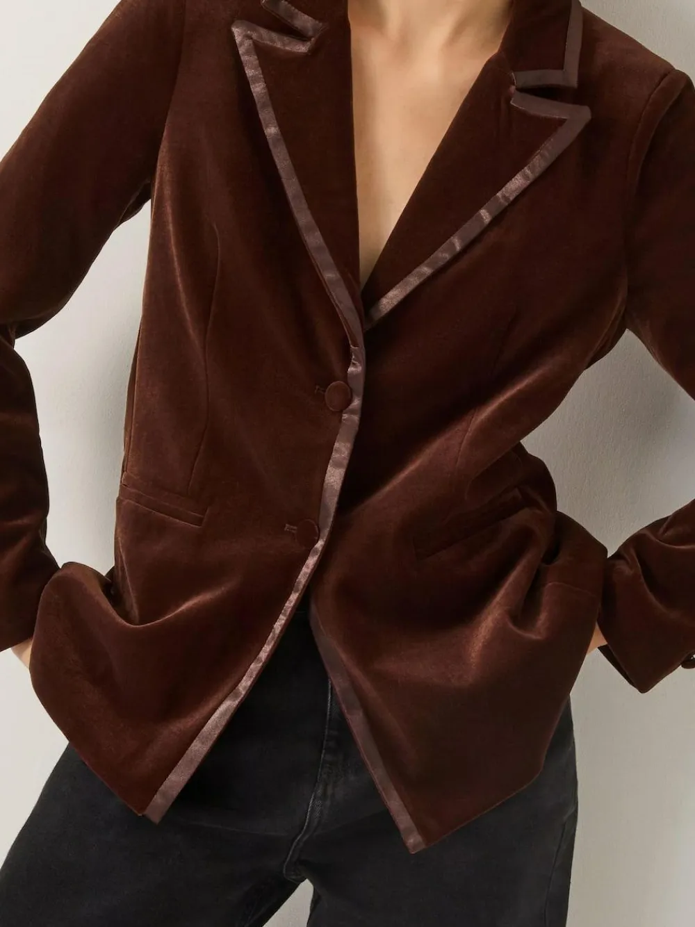 Monsoon Mila Single Breasted Velvet Blazer Brown