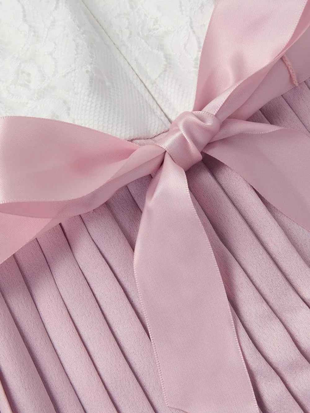 Something a little different. Move over, party dress, the jumpsuit is having its moment. A fun alternative to a classic occasion look, it s designed with a short sleeve lace bodice and pink pleats through the wide leg silhouette. Finished with a ribbon bow at the waist and a discreet back zip fastening. Machine washable. 100% Polyester.