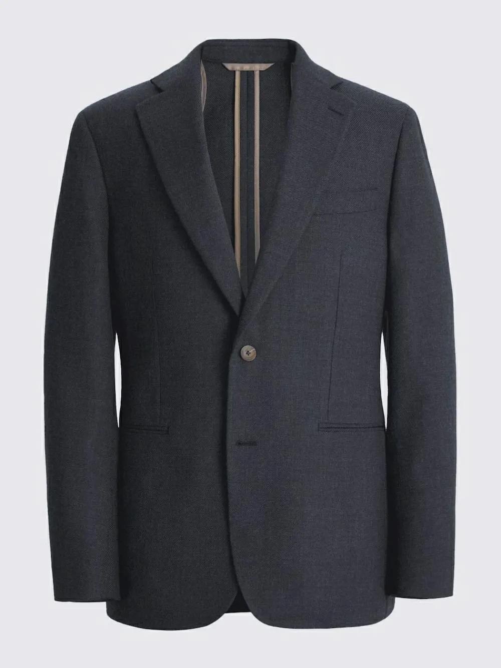 Cut to MOSS’s signature tailored fit for a strong and defined outline, this blue twill jacket is blended with a generous amount of wool for richness and durability. Keep it sharp with a crisp poplin shirt or introduce a little texture with a dobby weave Dry clean only. 70% Wool, 30% Polyester.