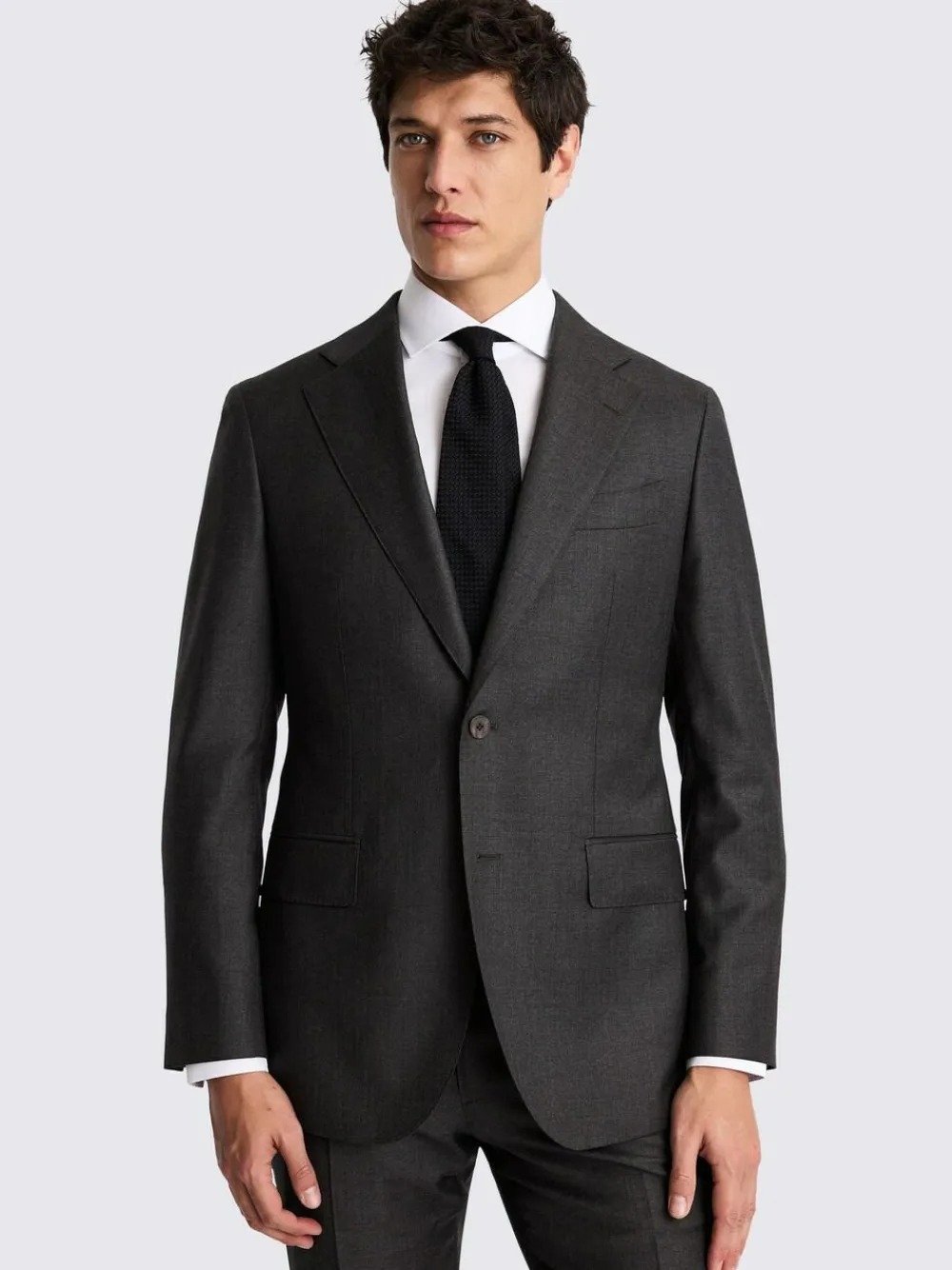 Crafted in 100% wool with a subtle twill weave and AMF stitching, our tailored-fit charcoal jacket is all about quiet refinement.We ve finished it with a breathable half-canvas construction for a strong shape across the shoulder and a natural drape on the torso. Dry clean only. Main 100% Wool. Lining 55% Polyester, 45% Viscose.