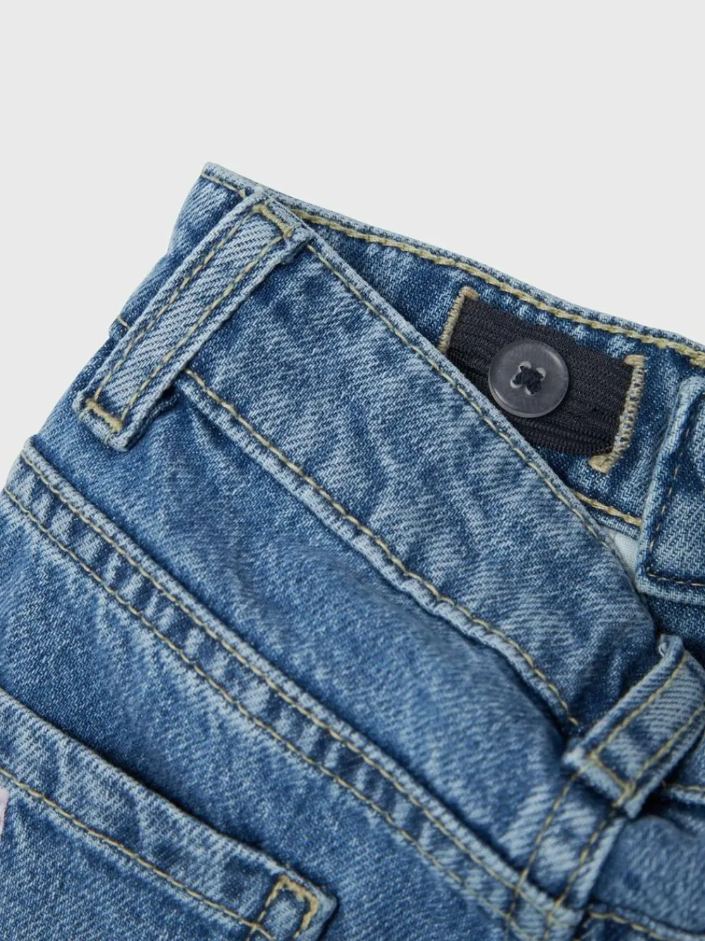 Put together the perfect outfit for your child with quality everyday styles and create a comfortable and trendy look. Denim is a durable woven fabric available in several expressions for a unique look.Product Type : Mom fit jeansClosing : Press stud and half mock fly fastening (size 80-110) or hook button and zip fly fastening (size 116-164), Press stud fasteningPockets : Back pockets, Front pocketsExtra DETAILS: : Adjustable waist, EmbroideryWash/Finish : Subtle abrasionsPrint : Print repeated across the entire surface of the productFit : This pair of jeans has a baggy fit hip and a trendy mom fit silhouette Machine washable. 100% Cotton.