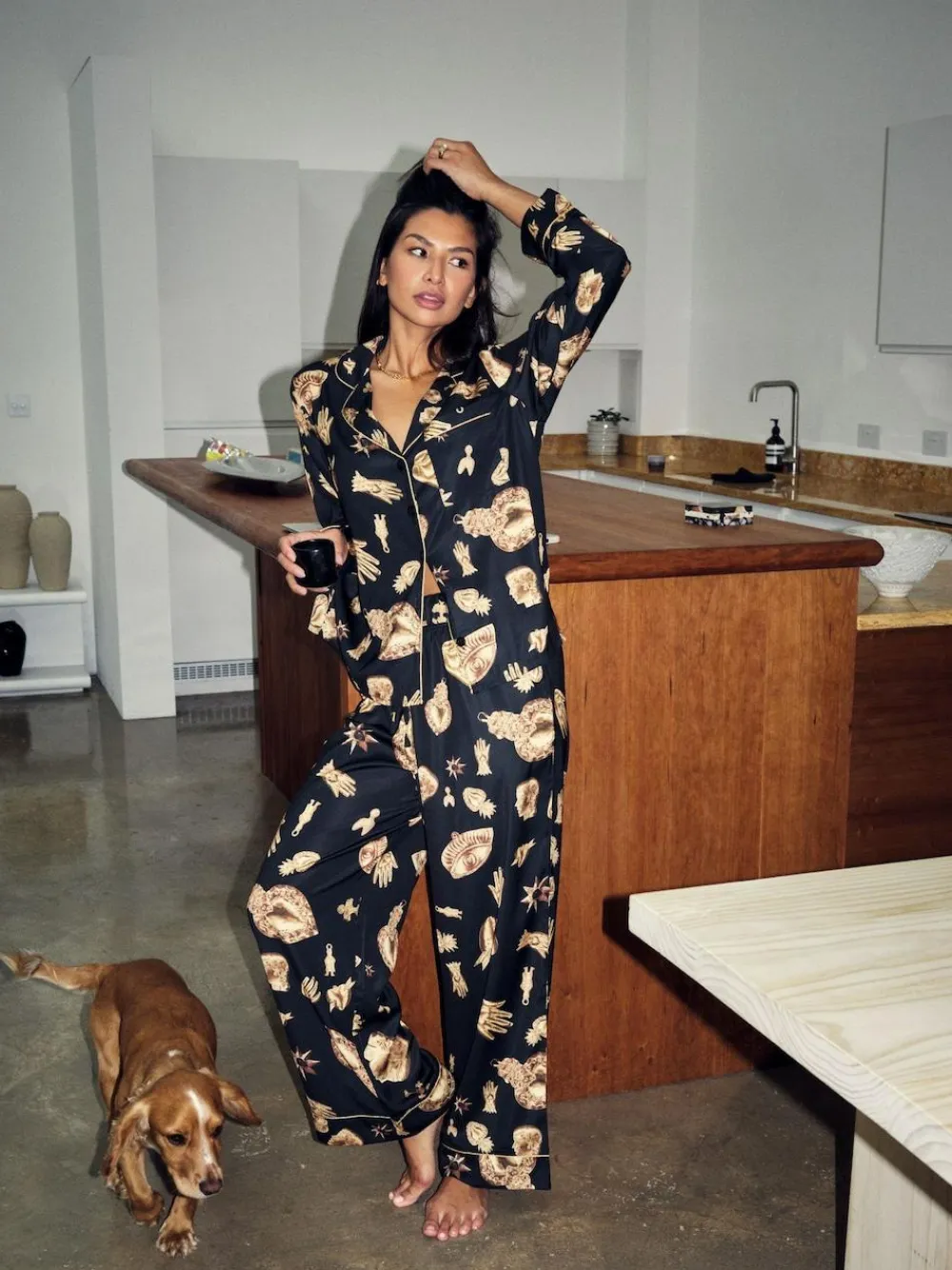Never Fully Dressed Black/Gold Charm Satin Button Through Pyjamas^Women All Night & Lounge|Pyjamas