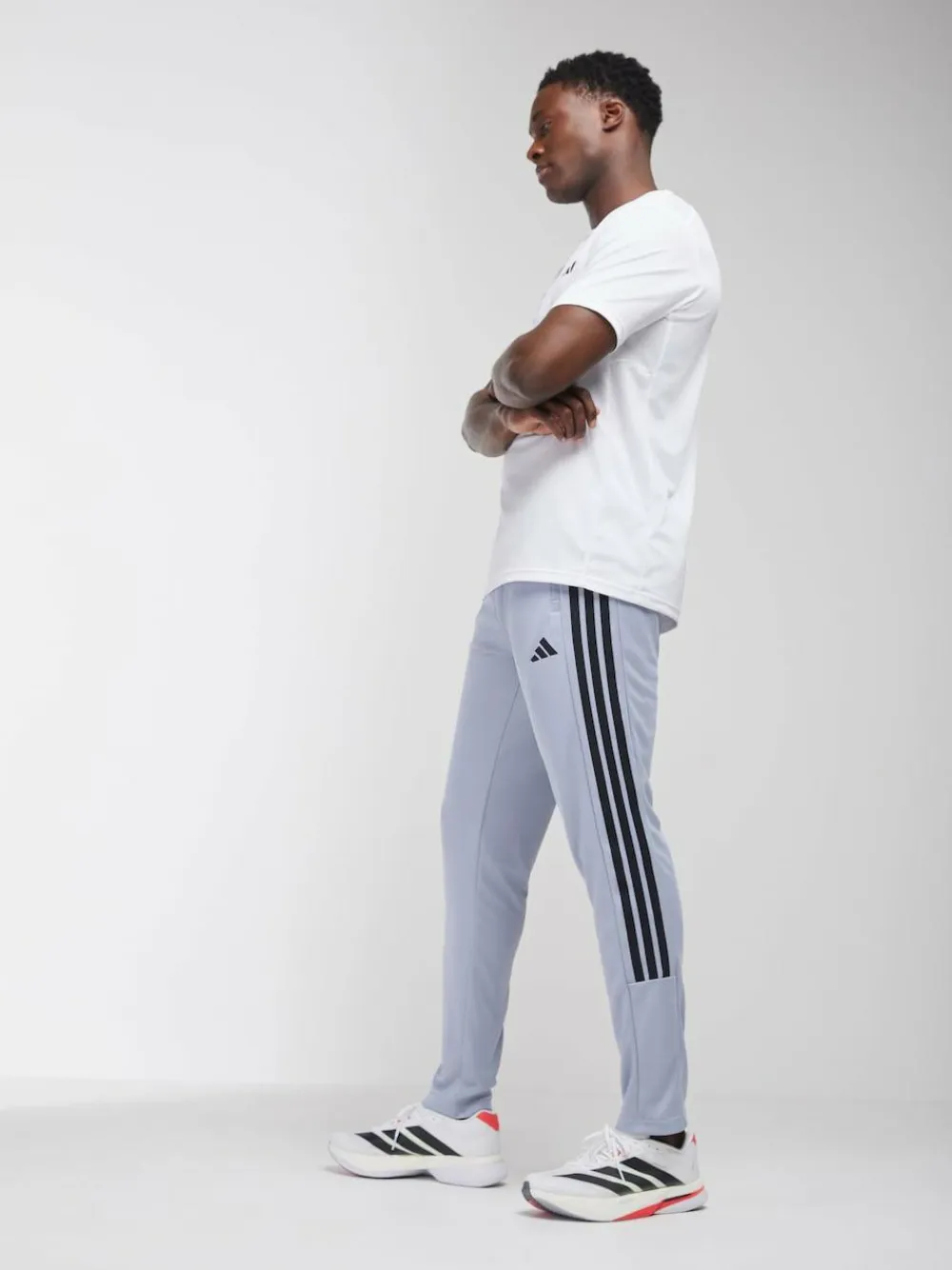 New adidas Workout Essentials All-Set 3-Stripes Knit Joggers Grey