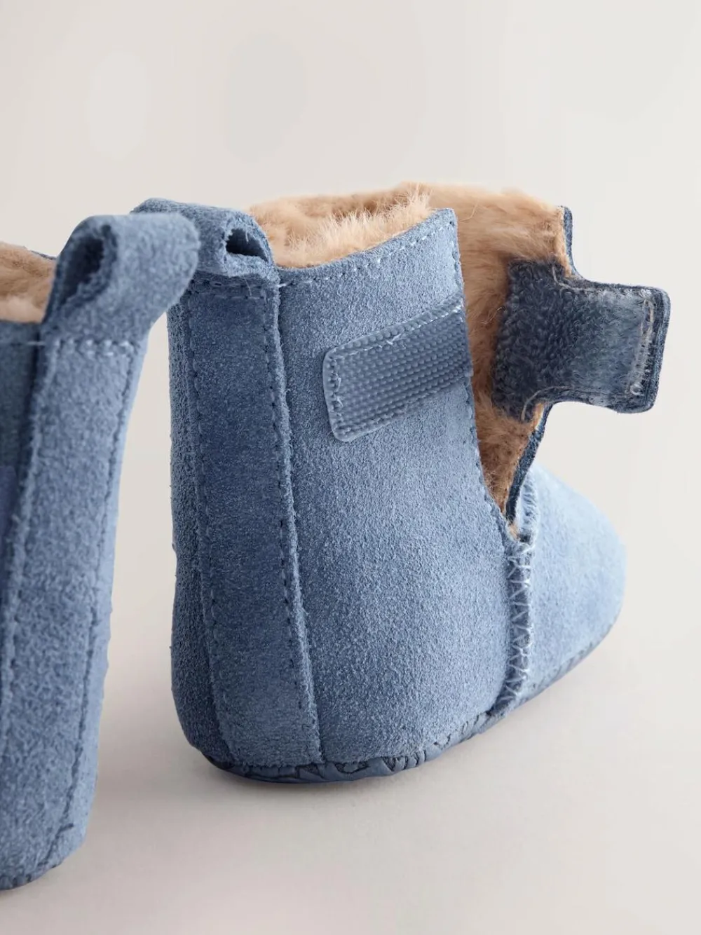 Introduce his tiny toes to ultimate comfort with the Baker by Ted Baker Baby Boys Slipper Padders Boots. These adorable slipper boots are crafted from soft, luxurious suede, ensuring a gentle touch against delicate skin. Designed for warmth and cosiness, they feature a plush faux fur lining that will keep his feet snug. Getting them on and off is a breeze thanks to the convenient side touch and go fastening, while the Baker branded trims on the strap add a touch of designer charm. Complete with a soft sole, these slipper padder boots are perfect for those precious first steps and cosy moments. Suede boots Faux fur lining Touch and go fastening Baker branded trims Soft sole Upper – 100% Leather, Lining. and Sock – 100% Polyester. Sole – 50% Polyester, 50% PU.