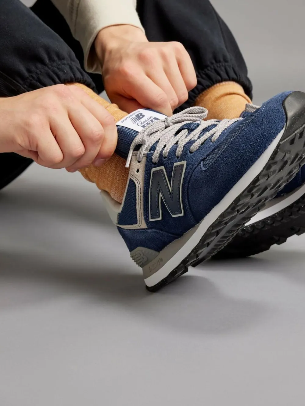 As hybrid road/trail design built on a wider last than the previous generation’s narrow racing silhouettes, the 574 offered a uniquely versatile mix of new, different, uncomplicated, rugged, durable, and comfortable that was adopted as a closet staple across the globe. That’s why today, the 574 is synonymous with the boundary defying New Balance style, and worn by anyone. Upper – Leather, Lining and Sock – Textile, Sole – Other Materials.