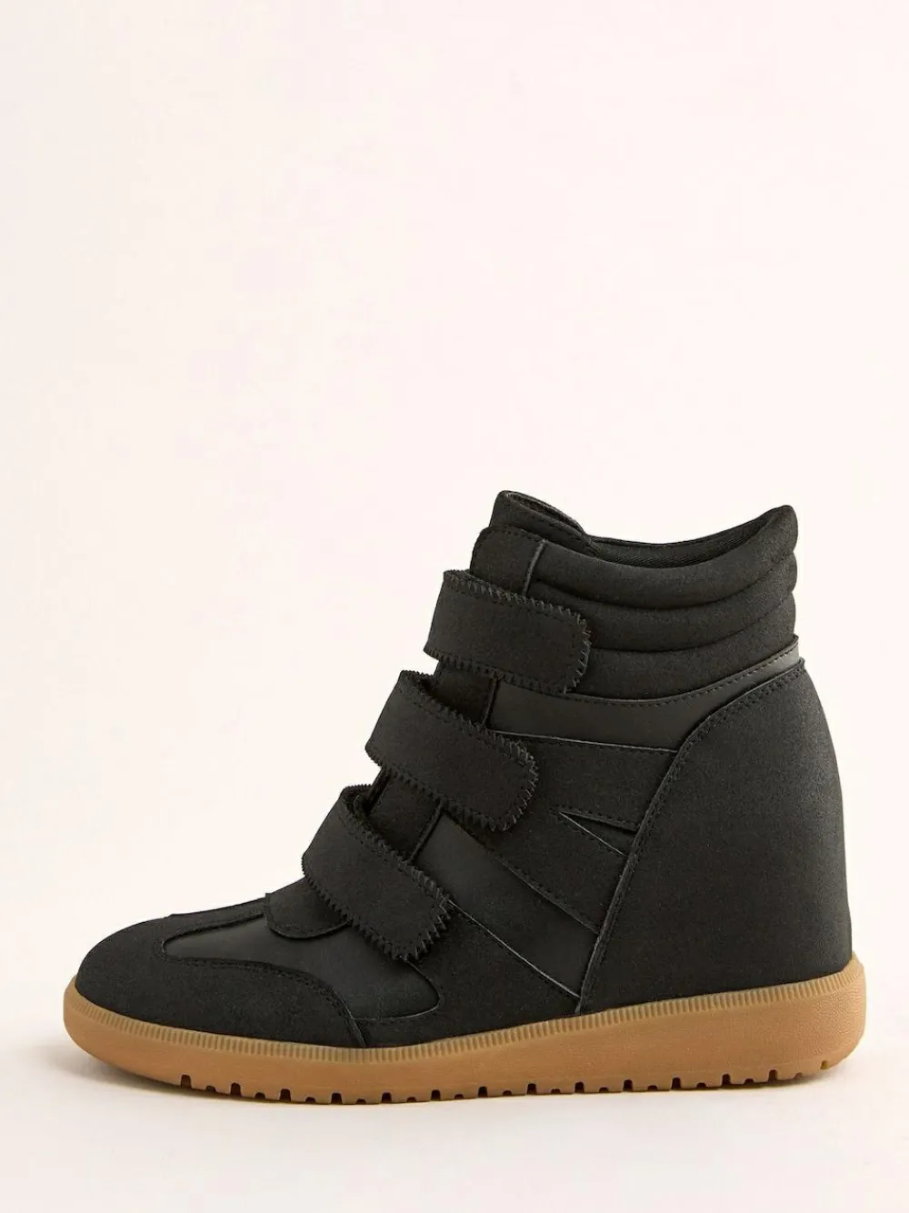 New Friends Like These Black Faux Leather Velcro High Top Wedge Casual Trainers