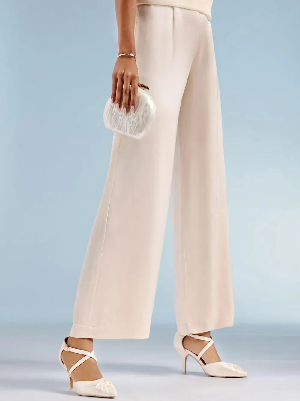 An exquisitely detailed bridal court shoe with an elegant stiletto heel. Its delicate knot detail and securing ankle straps make it a sophisticated and feminine choice for a bride. Features: – Closed toe court – Mid heel height – Luxurious satin finish – Twist details – Cross strap design. Upper – Textile, Lining & Sock – Other Materials, Sole – Other Materials.