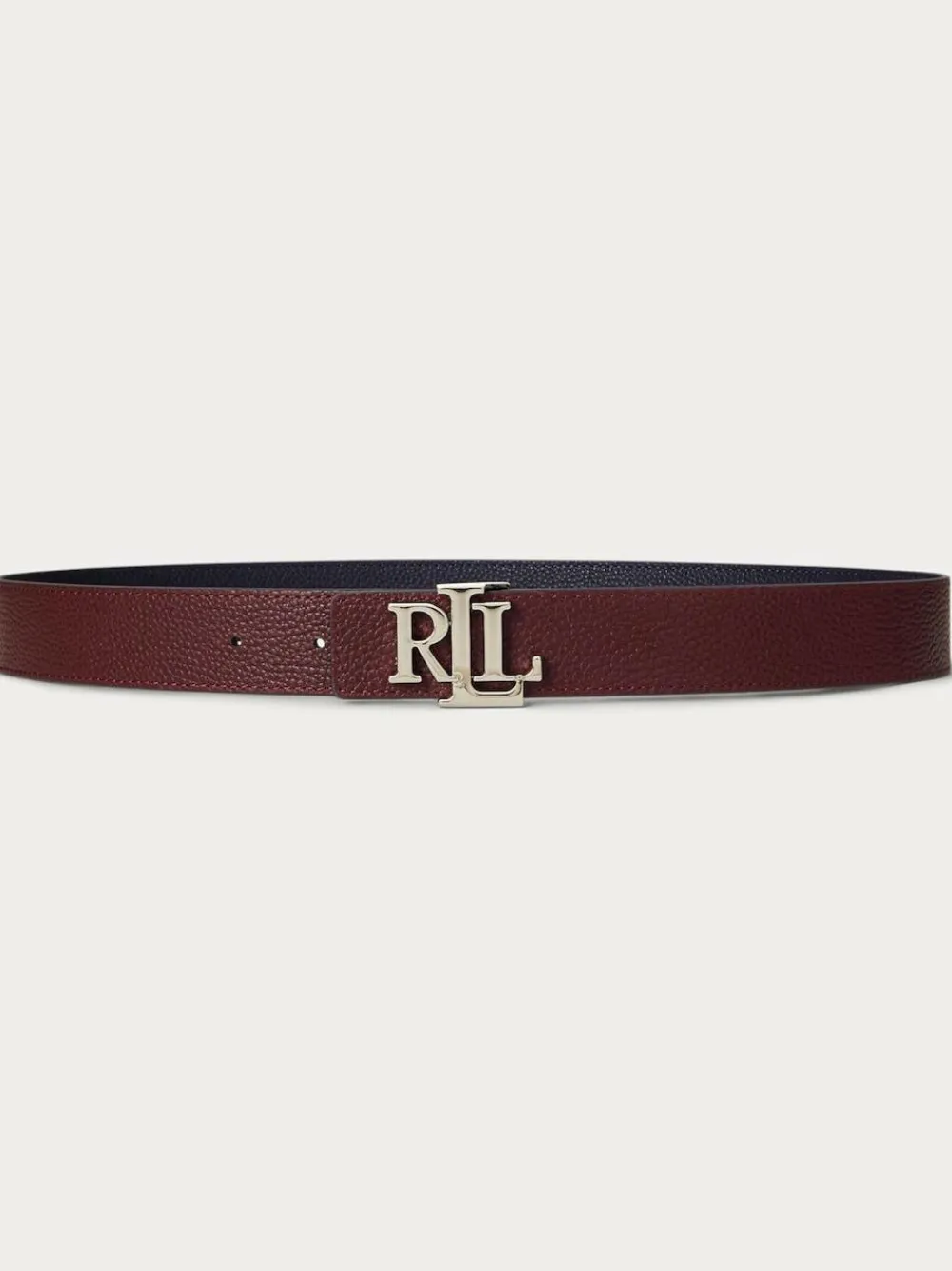 New Lauren Ralph Lauren 2.5cm Logo Reversible Pebbled Leather Belt Lauren Navy/Dark Garnet