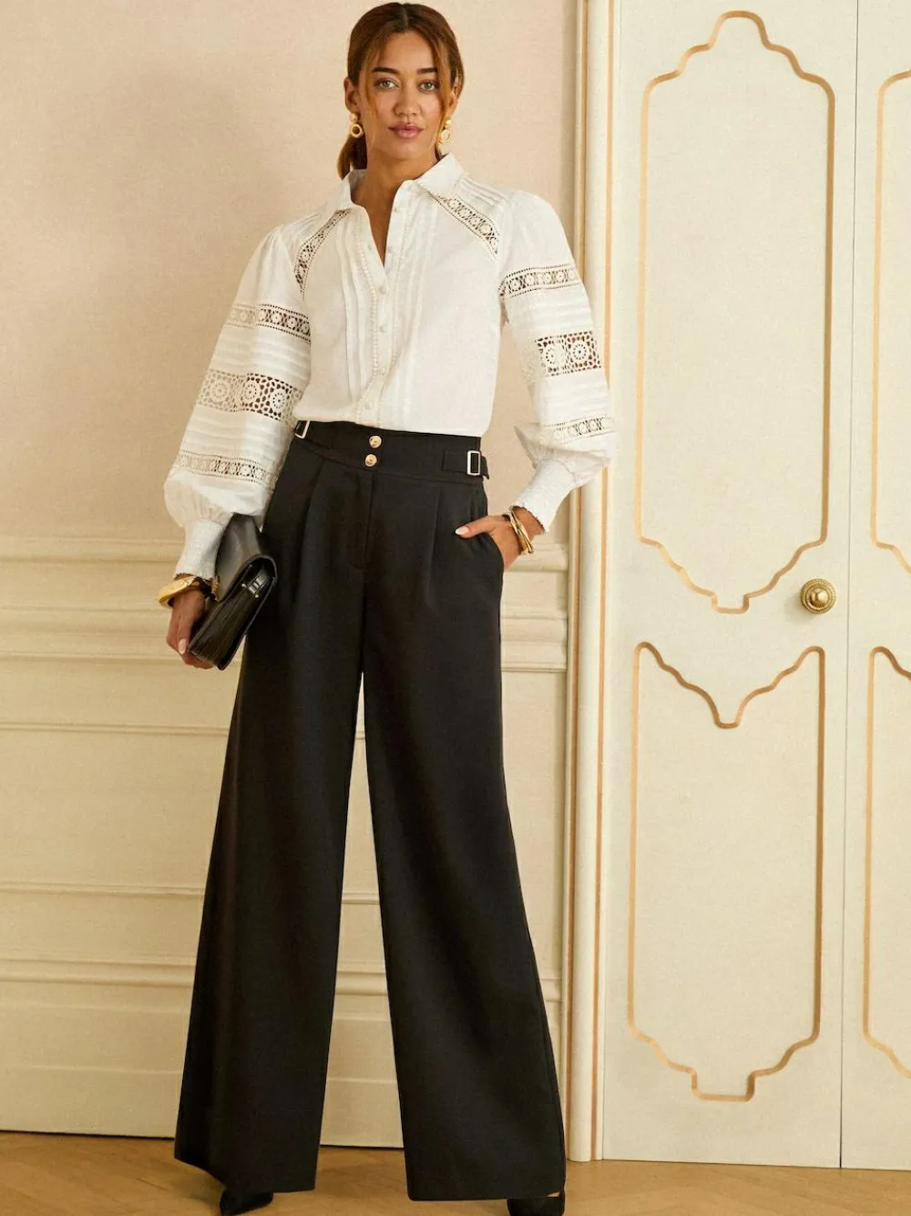New Love & Roses Black Wide Leg Buckle Detail Trousers