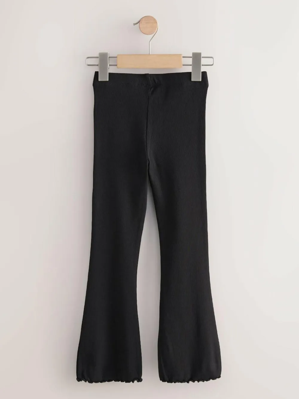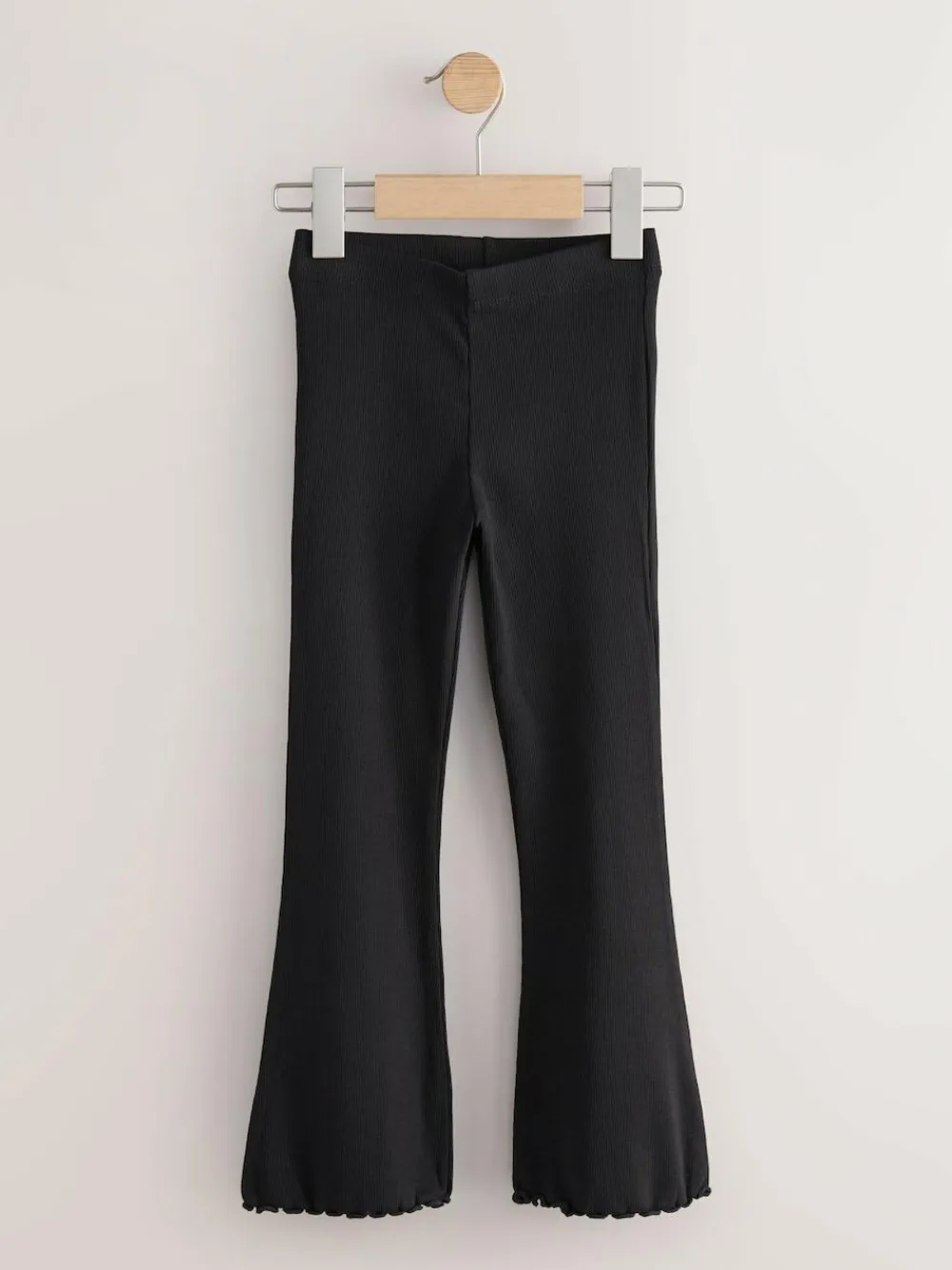 This 2-pack of rib leggings have a stylish flare shape, made from a comfortable 4-way stretch cotton-rich fabric, finished with an elasticated waistband and a frilled trim. Ideal for casual wear or school. 2-pack Regular fit Flared leg 4-way stretch fabric Elasticated waistband Trim detailing 2 x Leggings 95% Cotton, 5% Elastane.