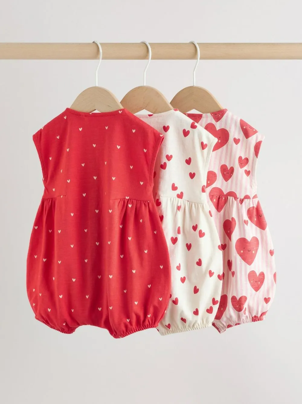 New Next 3 Pack Baby Rompers Red Heart Printed Button Through