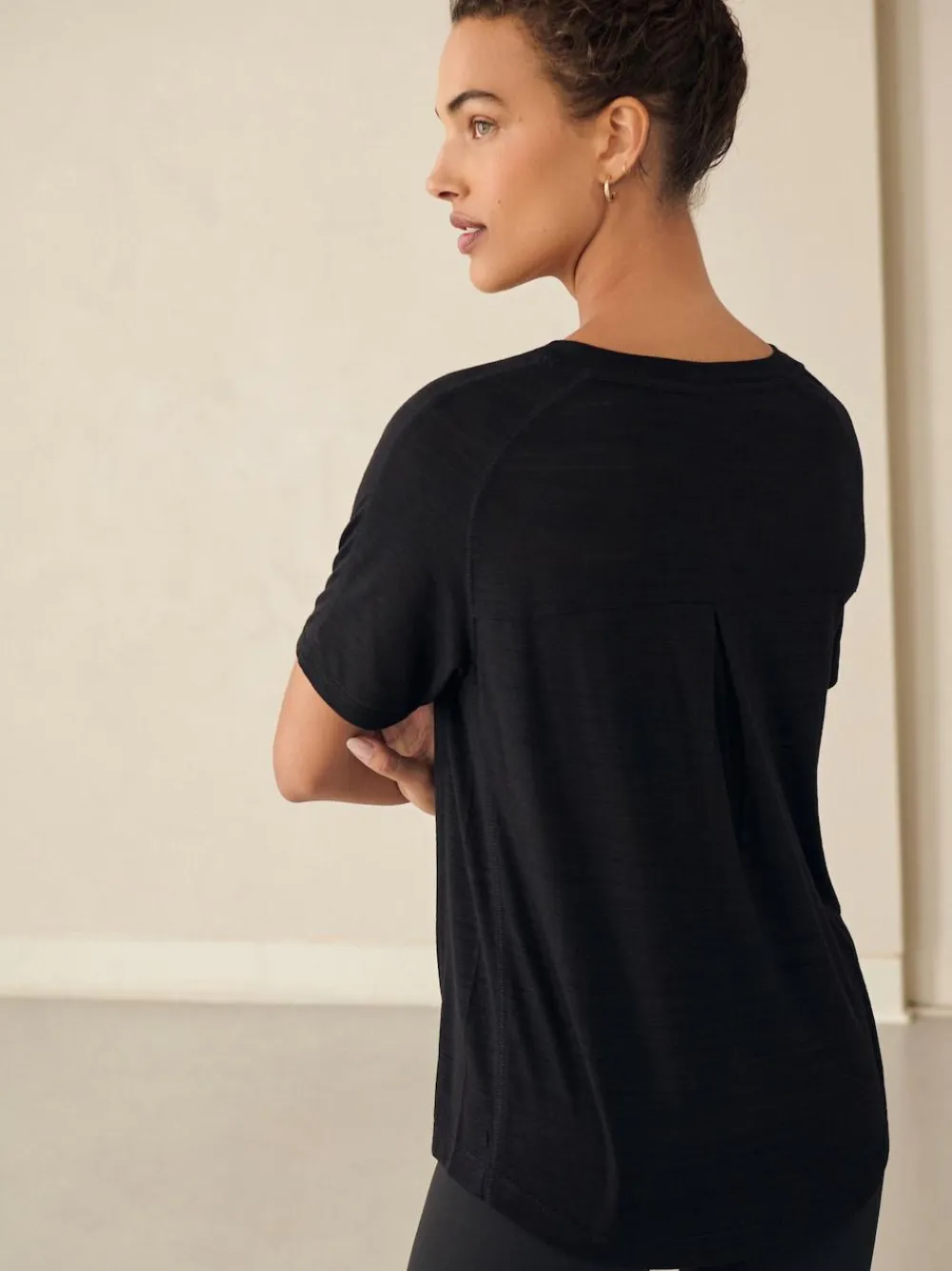 Maintain your comfort during intense sessions with this lightweight active t-shirt. Engineered with moisture management properties and anti-odour technology, its breathable fabric keeps you cool and fresh. The relaxed fit and pleat detail ensure freedom of movement for any workout. Short sleeves Lightweight active fabric Back pleat detailing Moisture management properties Anti-odour technology Machine washable. 50% Polyester, 50% Viscose.