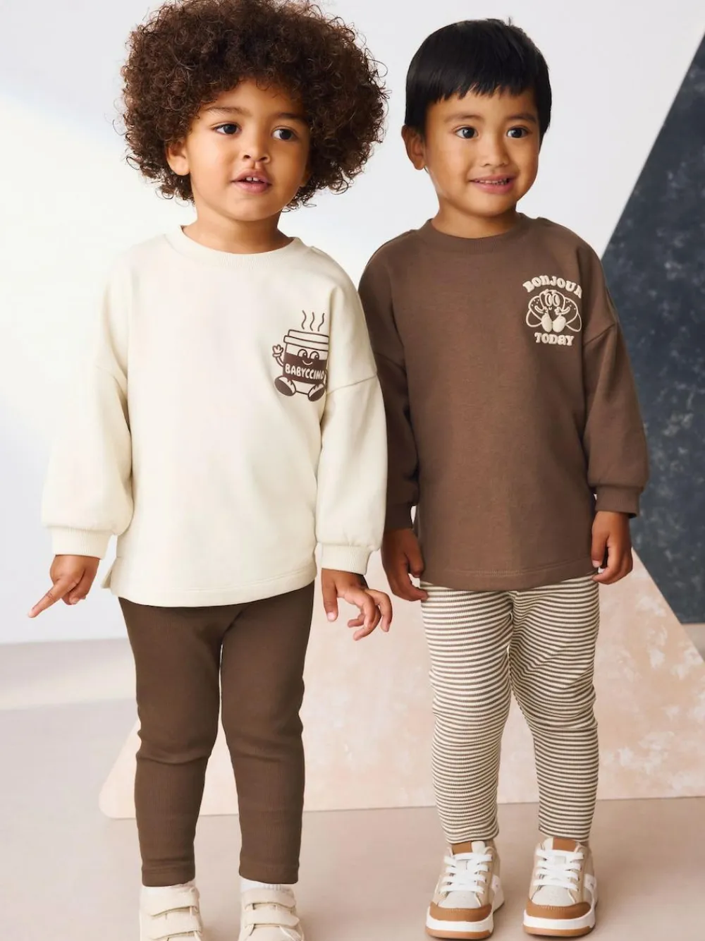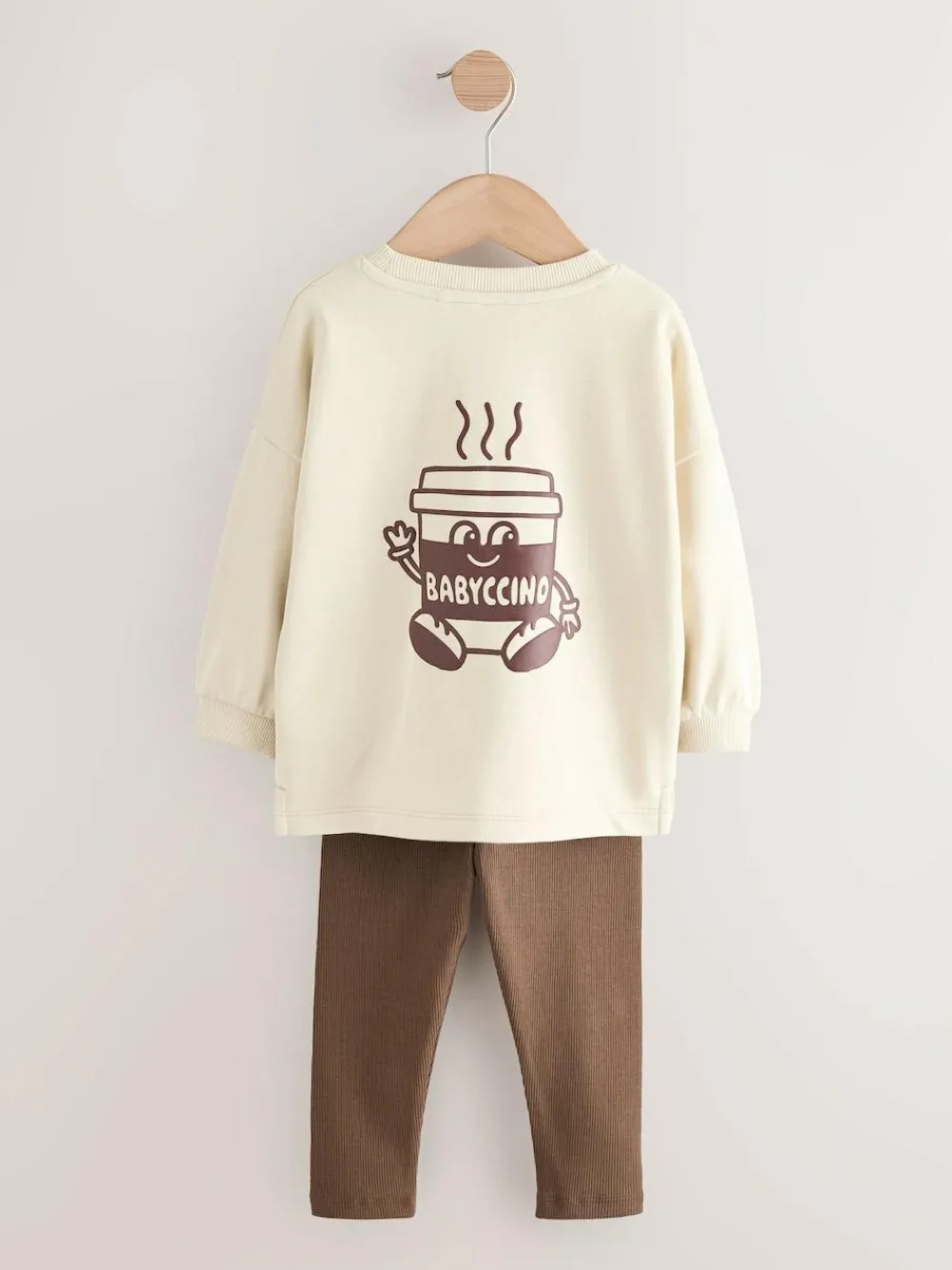 New Next Brown/Cream Babyccino Long Sleeve Tops & Leggings Set 2 Pack (3mths-7yrs)