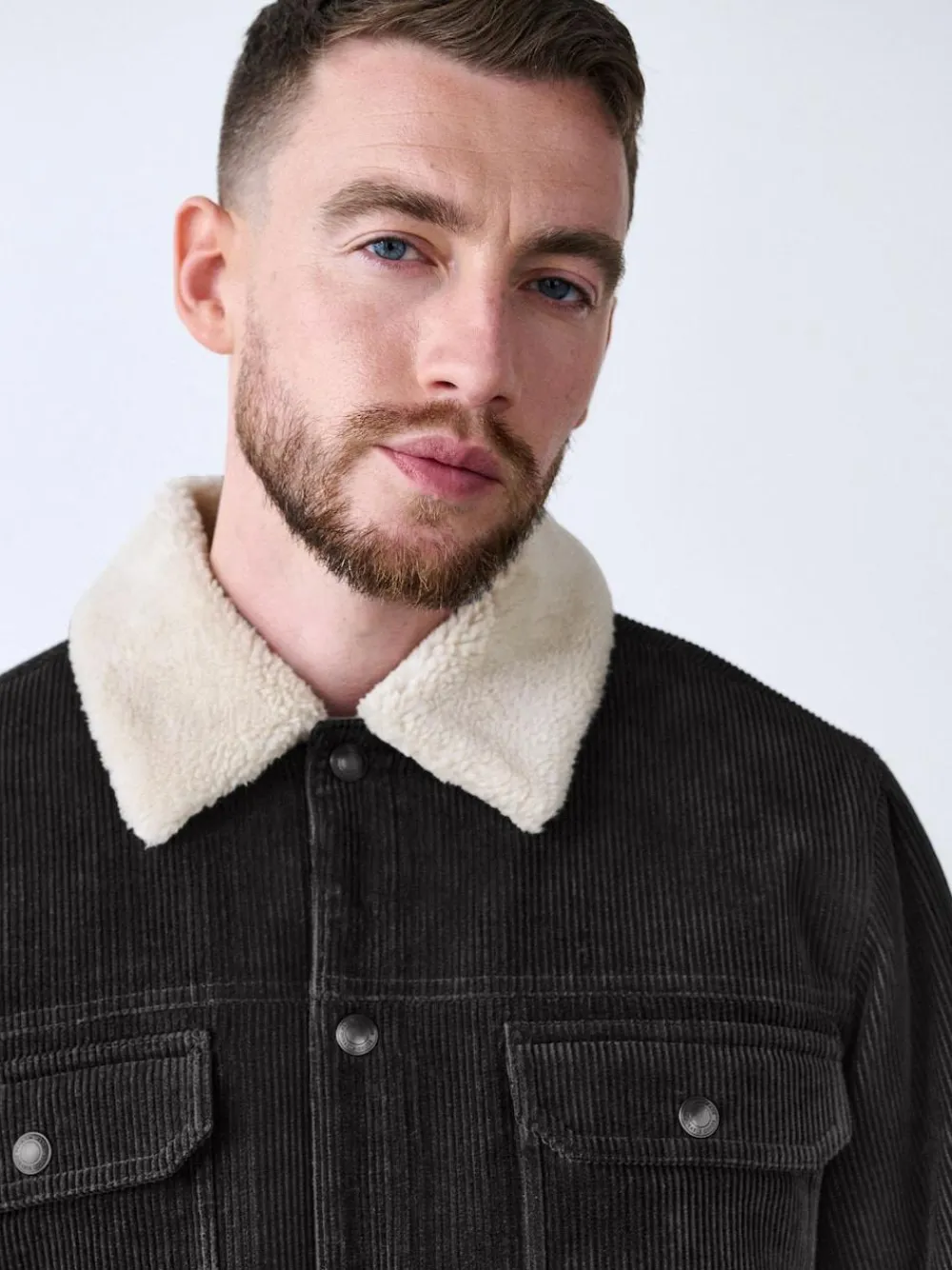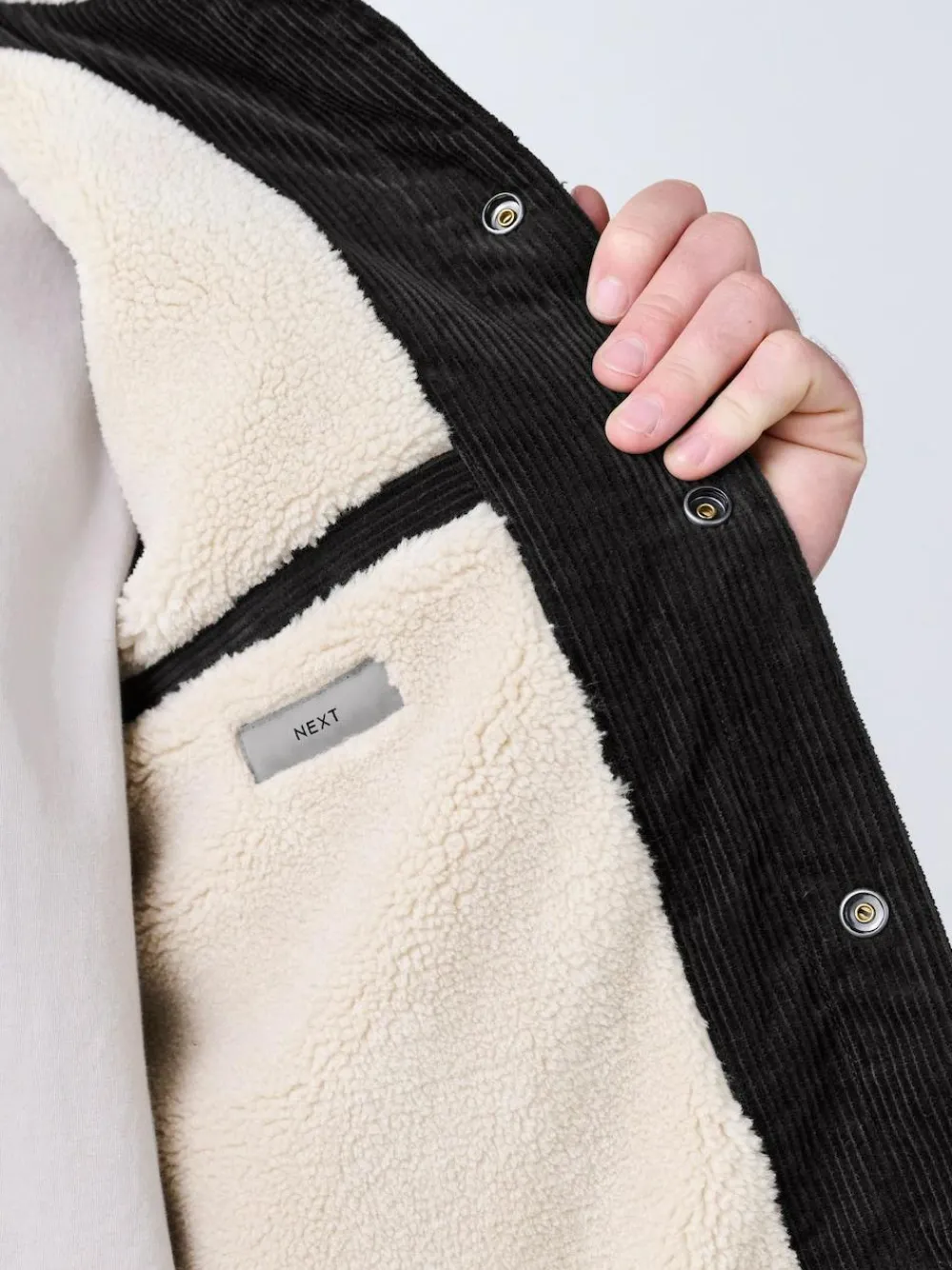 New Next Charcoal Grey Corduroy Borg Lined Trucker Jacket