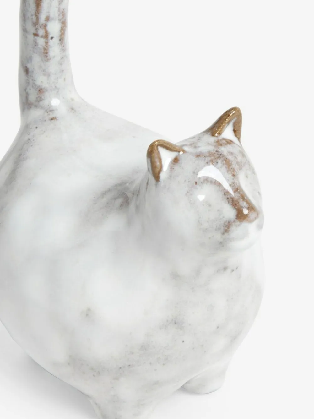 This adorable cat ornament with a beatiful grey glaze is perfect for holding your rings, or for just looking cute onThis adorable cat ornament with a beautiful grey glaze is perfect for holding your rings, or for just looking cute on a shelf or bedside table. Coordinating items available.a shelf or bedside table. Coordinating items available. Height 9cm Width 6.5cm Depth 11cm 100% Stoneware.