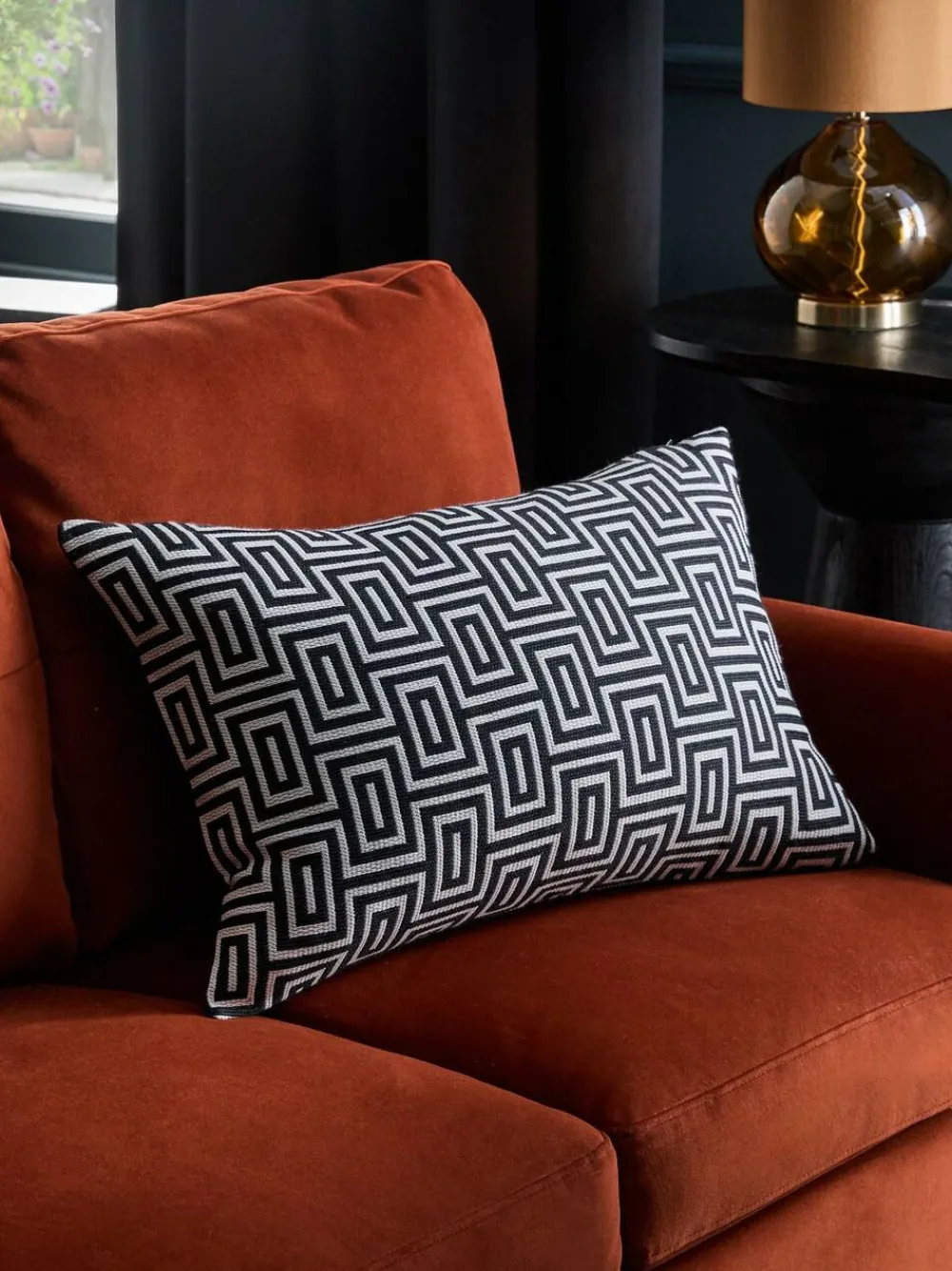 New Next Monochrome 40 x 59cm Geometric Jacquard Cushion