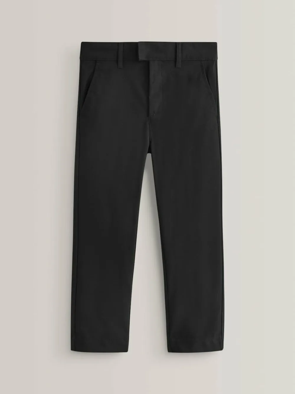 Go back to school in style with our Plus Waist Formal Stretch Skinny Trousers in black. The adjustable waist and skinny leg silhouette make these flat front trousers a modern, yet stylish addition to his school uniform. Made with an easy iron fabric, this pair of trousers also features Teflon® technology to help repel water based stains. Available in either a hook and bar fastening or an easy-pull on waist option, both styles make this school staple hassle-free to pop on and off. Key Features: Easy Iron Fabric – Handy easy-iron finish Teflon® Technology – a treatment that repels water and water-based stains for easy cleaning and quick drying Machine washable Adjustable waist Flat front Stretchable skinny style Plus fit: +2 inches for a wider fit on the waist Machine washable. 63% Recycled polyester, 34% LENZING™ ECOVERO™ Viscose, 3% Elastane. Plus fit styles are more generous through the waist and hips for a comfortable fit. , This product is made with teflon. Teflon® is a registered trademark of DuPont.