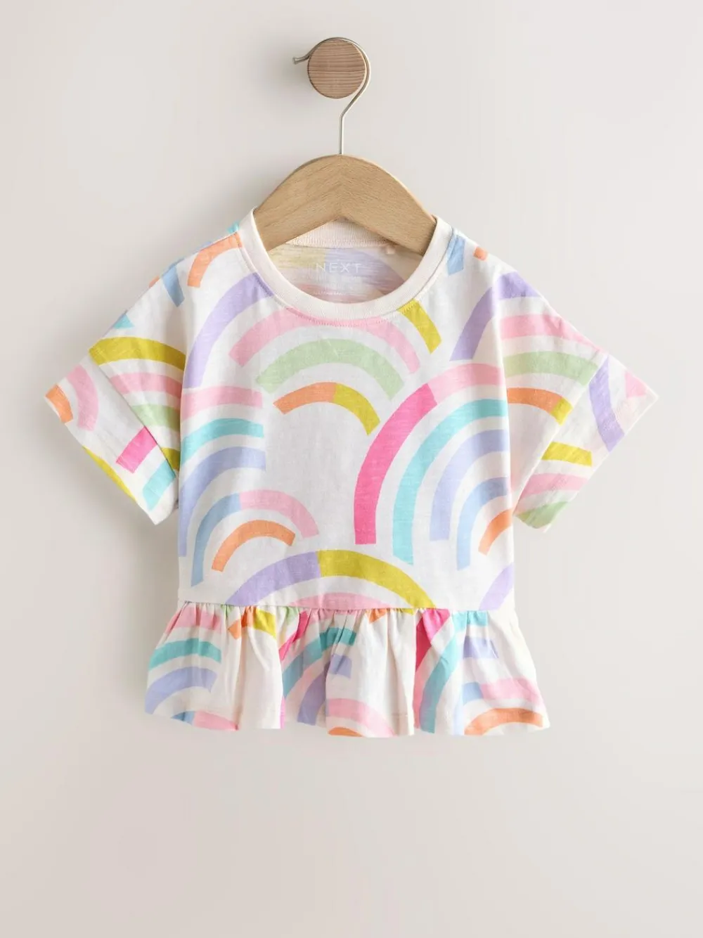 New Next Rainbow Short Sleeve Peplum T-Shirt (3mths-7yrs)