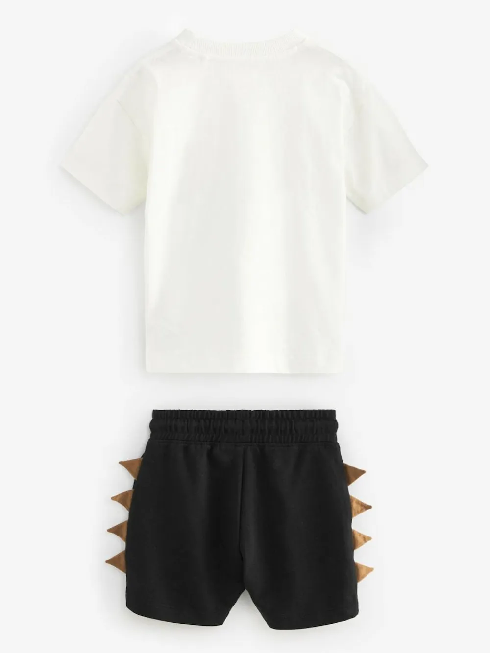 New Next Short Sleeve T-Shirt & Shorts Set 2 Pack (3mths-7yrs) (3mths-7yrs) Black/Tan Dinosaur