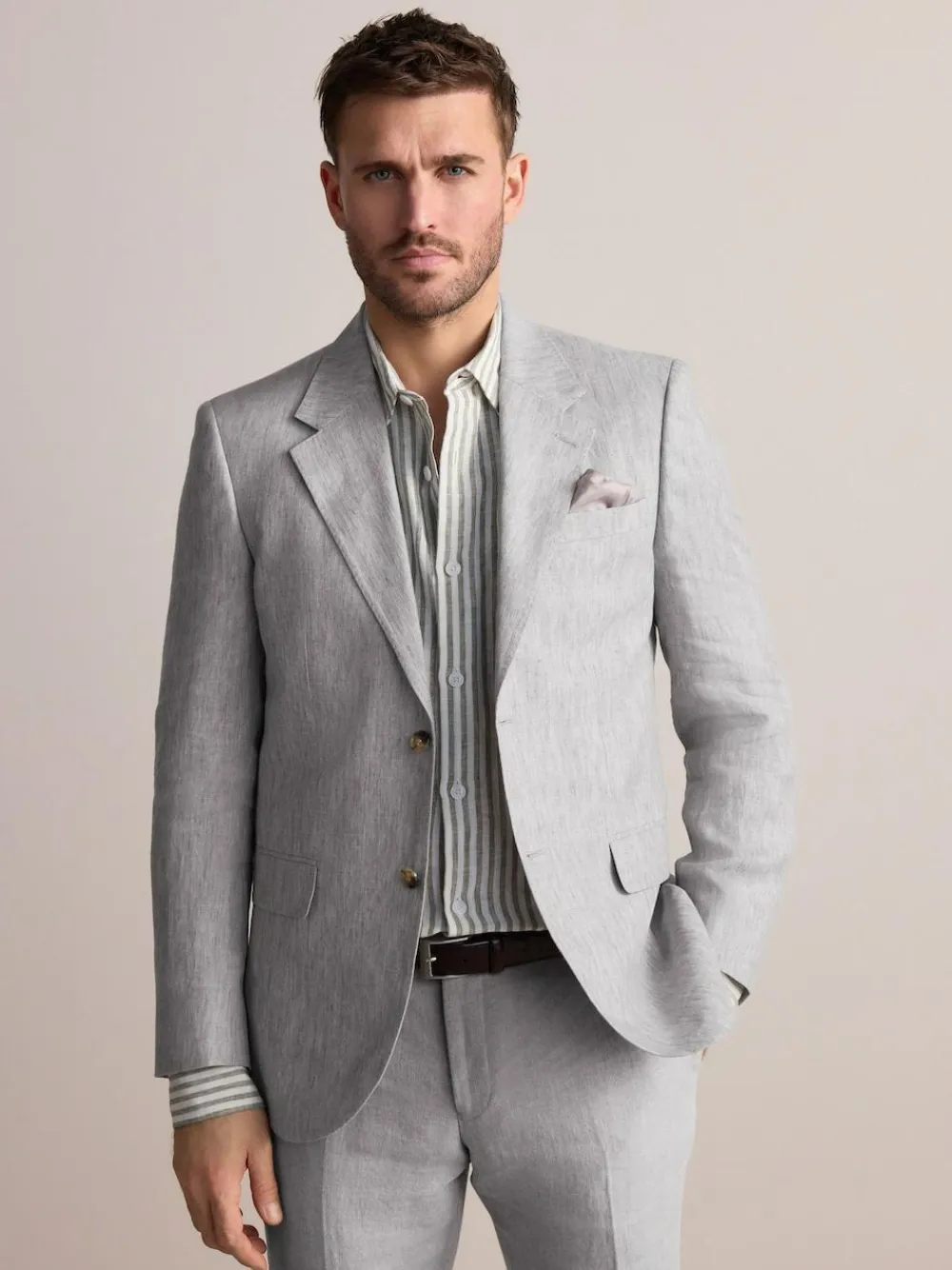 New Next Slim Fit Leomaster Italian 100% Linen Suit Jacket Light Grey