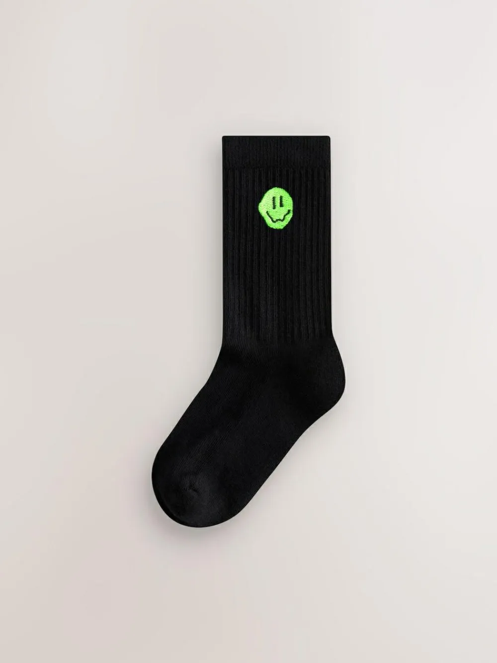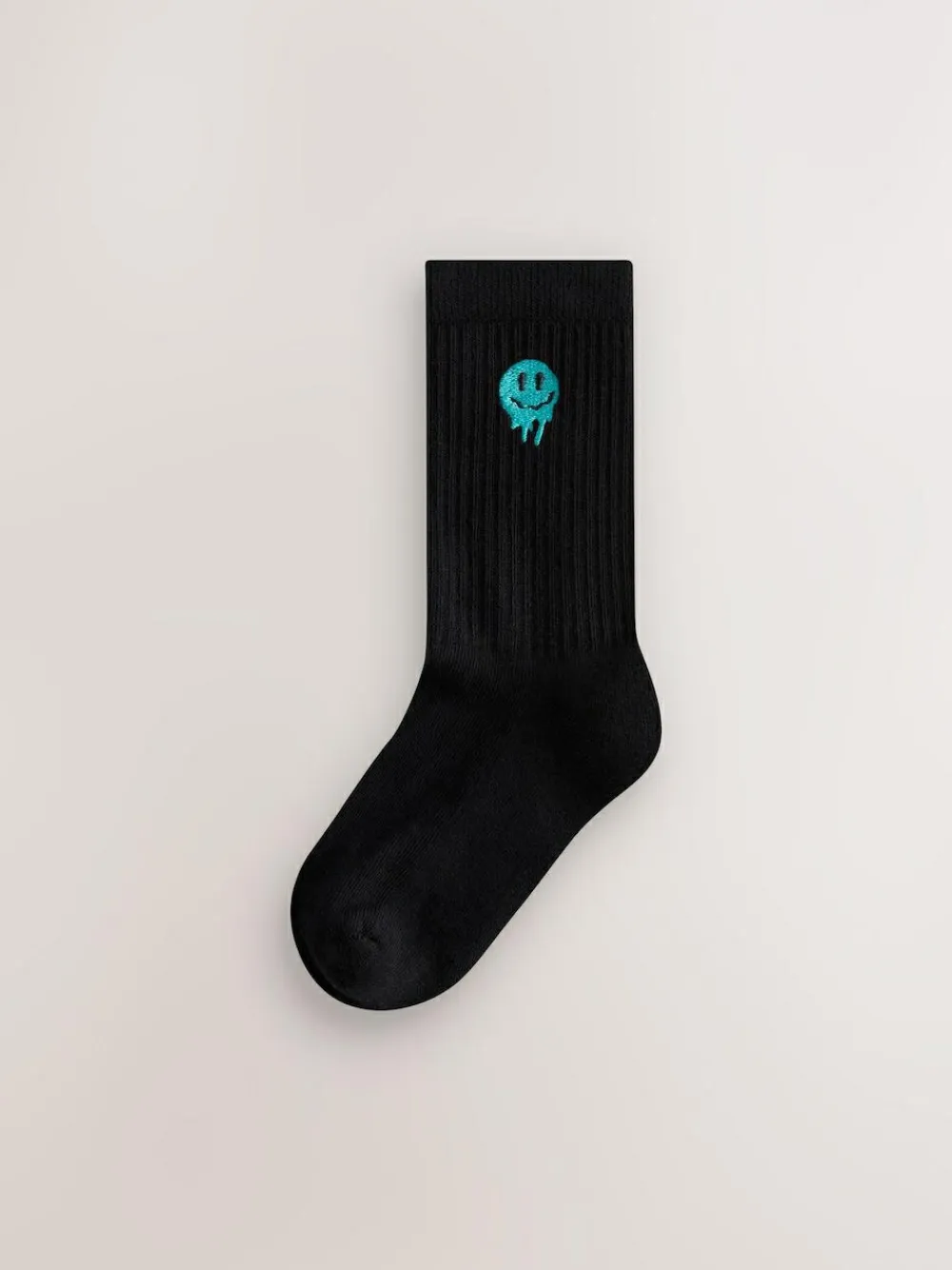 New Next Sport Rib Socks 5 Pack Black Smiley