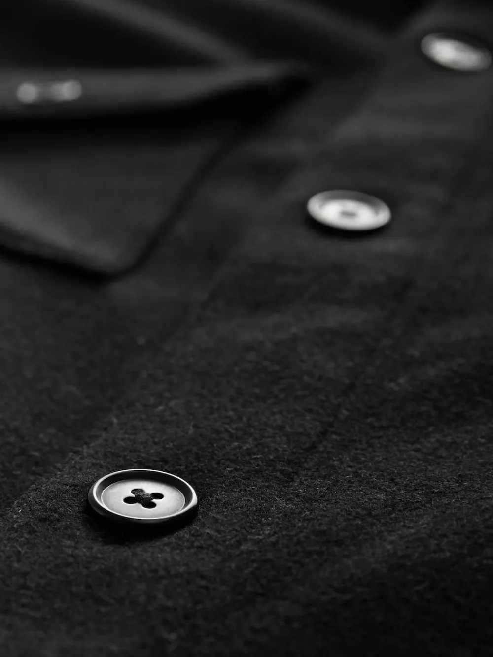 Elevate your casual look with this warm, wool-blend black overshirt, featuring a brushed feel, a button-up fastening, dual flap chest pockets and a classic collar, finished with long sleeves. Regular fit Wool-blend fabric Brushed finish Button-up fastening Dual flap chest pockets Classic collar 72% Polyester, 14% Wool, 6% Viscose, 4% Acrylic, 3% Nylon, 1% Cotton.