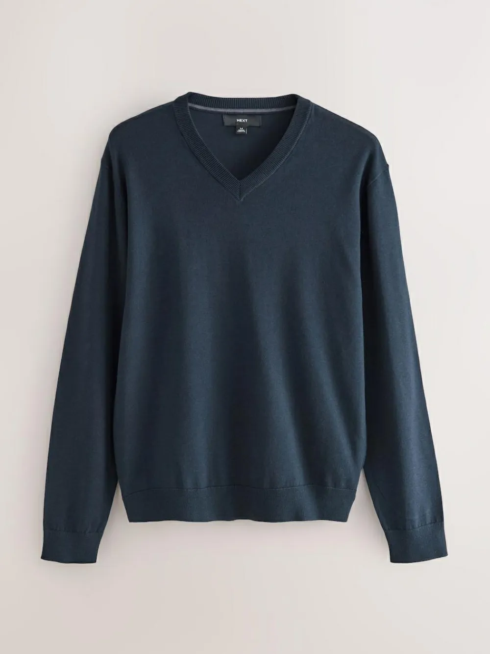 New Next V-Neck Cotton Rich Long Sleeve Jumper Navy Blue