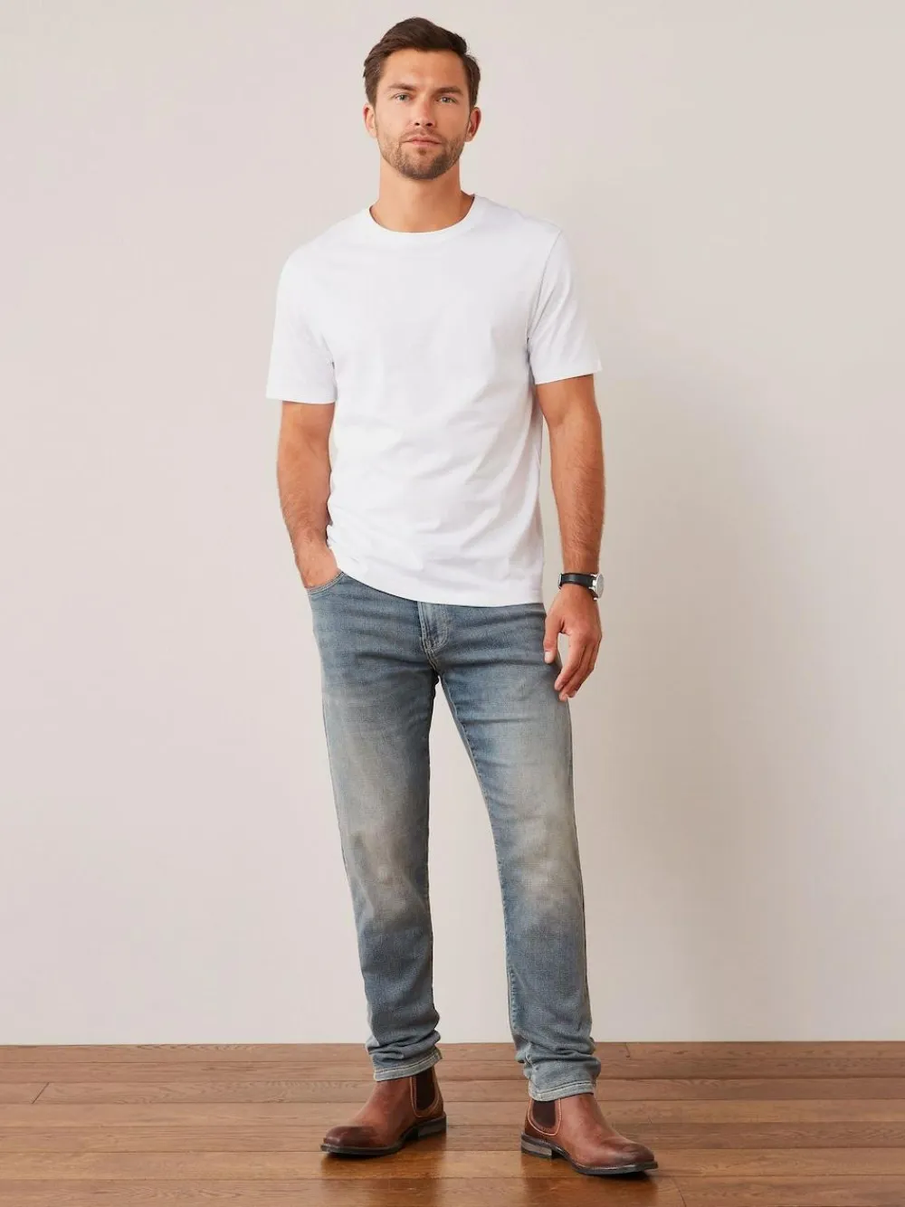Our regular fit tee is easy to wear and fits straight down the body. Our essential white t-shirt is the perfect easy-to-wear staple for your wardrobe. Made from pure cotton, it features a classic crew neck and short sleeves. Lightweight fabric – 160gsm Regular fit Ribbed crew neck Dual stitched hems 100% Cotton. Indicates styles available in Tall sizes with longer sleeves & body