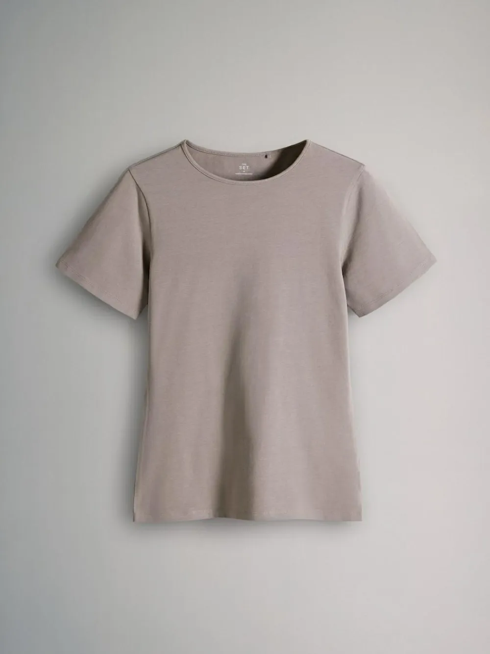 New The Set 5 Pack Short Sleeve Fitted Crew Neck T-Shirts Black/Brown/Neutral/Nude/White
