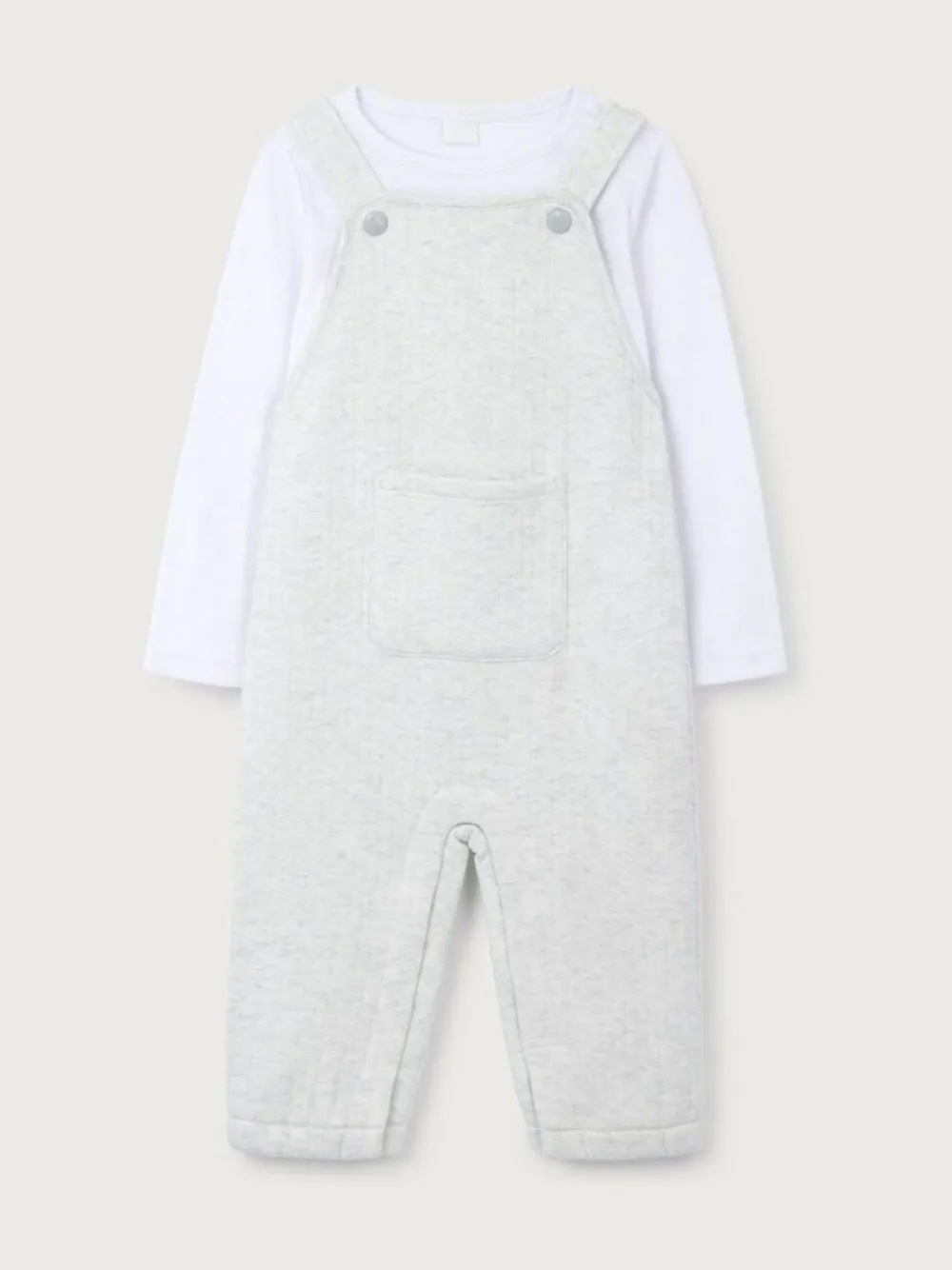 • Casual two-piece design• Pure cotton• Branded fastenings• Includes: one dungarees and one long-sleeve topFor little ones who love big adventures, this duo is ideal for running, jumping and playing. The dungarees have a patch pocket at the front and concealed poppers down the legs for easy changing. Made from super-soft pure cotton, the top has long cuffed sleeves and a teddy bear tab at the back of the neck for adorable detailing. Machine washable. Main 100% Cotton. Filling 100% Recycled polyester.