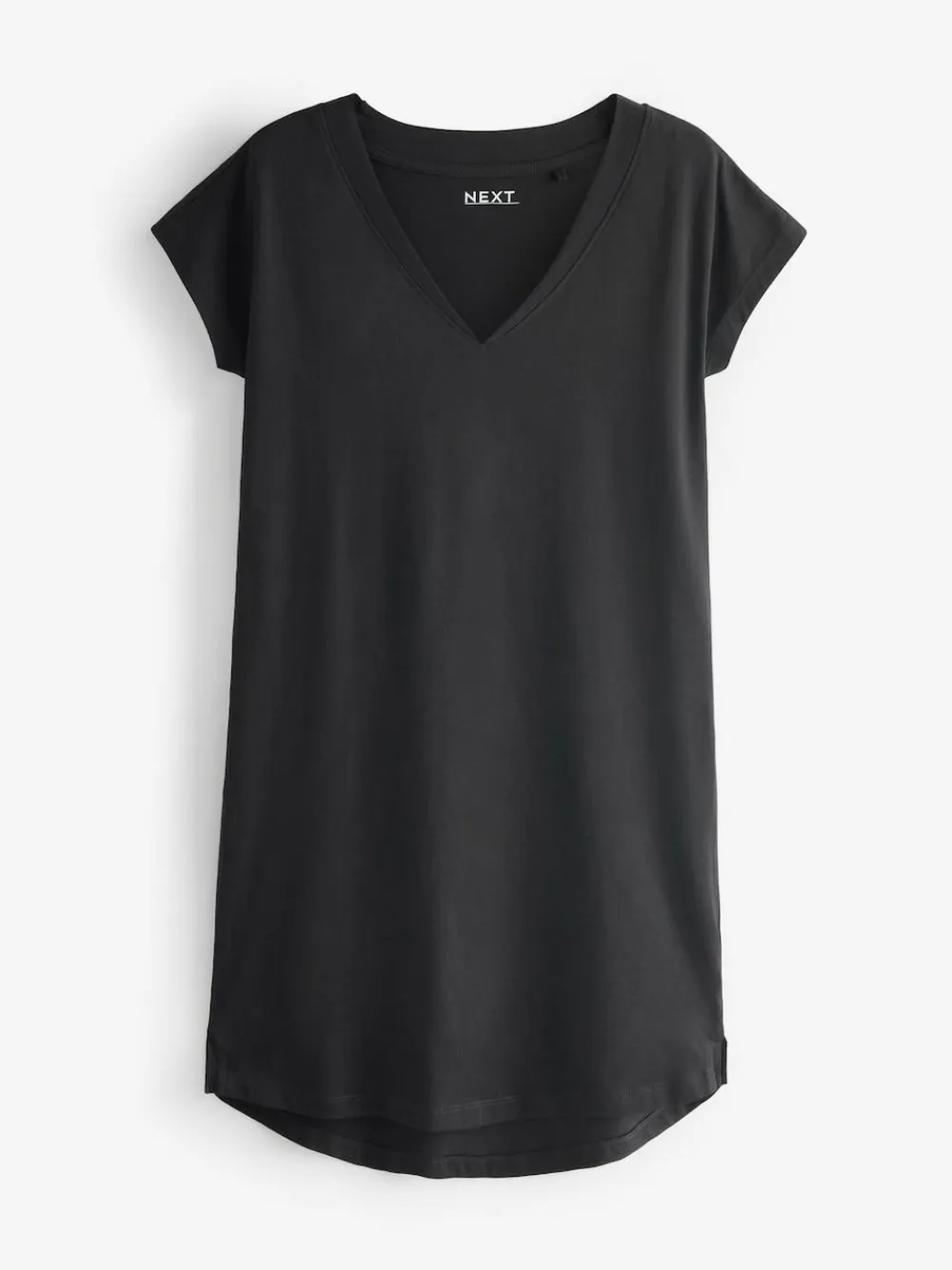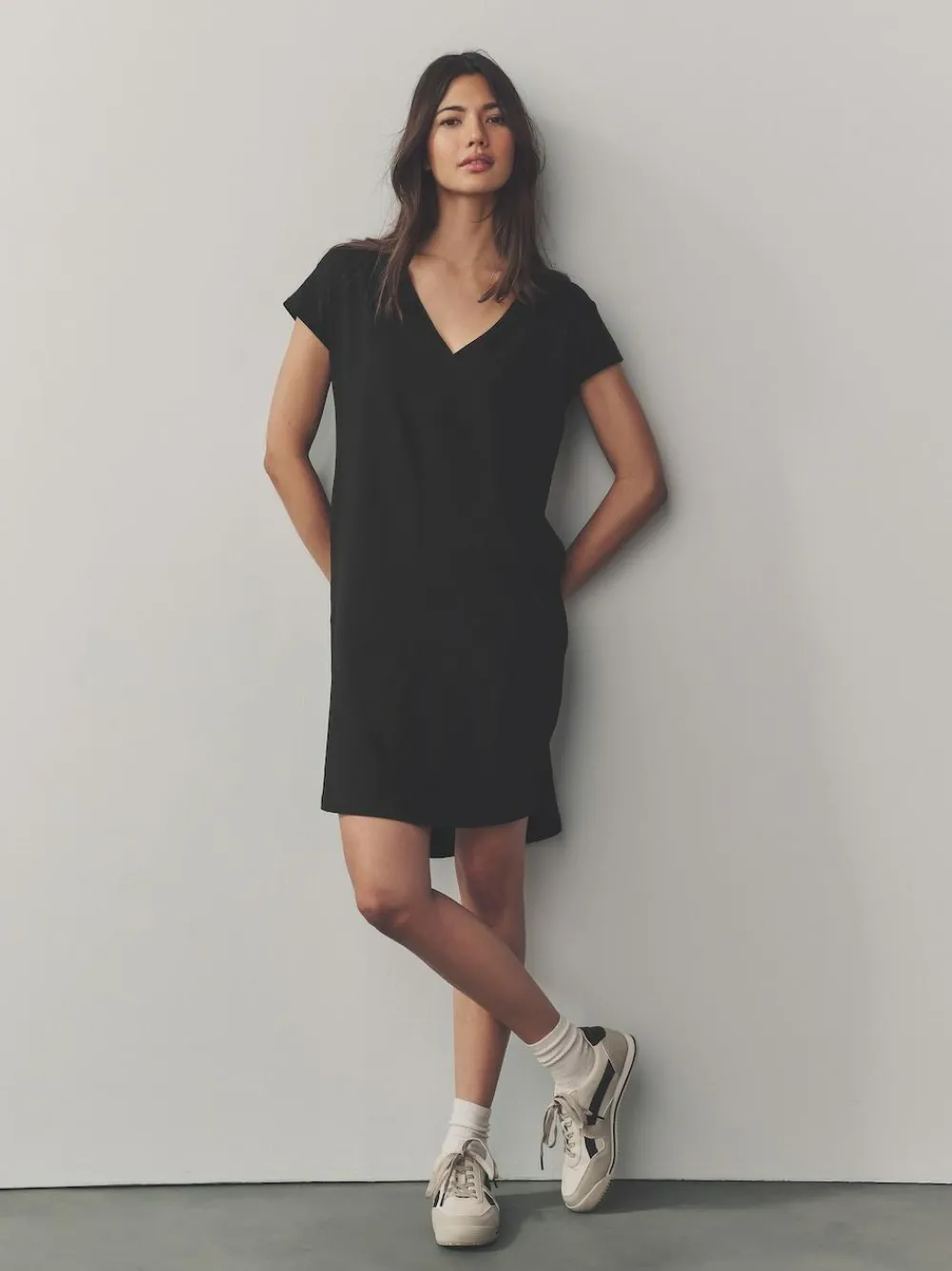 Our 100% cotton cap sleeve V-neck dress is cut in a breezy mini length. Made from a lightweight fabric, with a relaxed fit, this dress makes for easy summer dressing. Mini dress 100% cotton Cap sleeve V-neckline Machine washable. 100% Cotton.