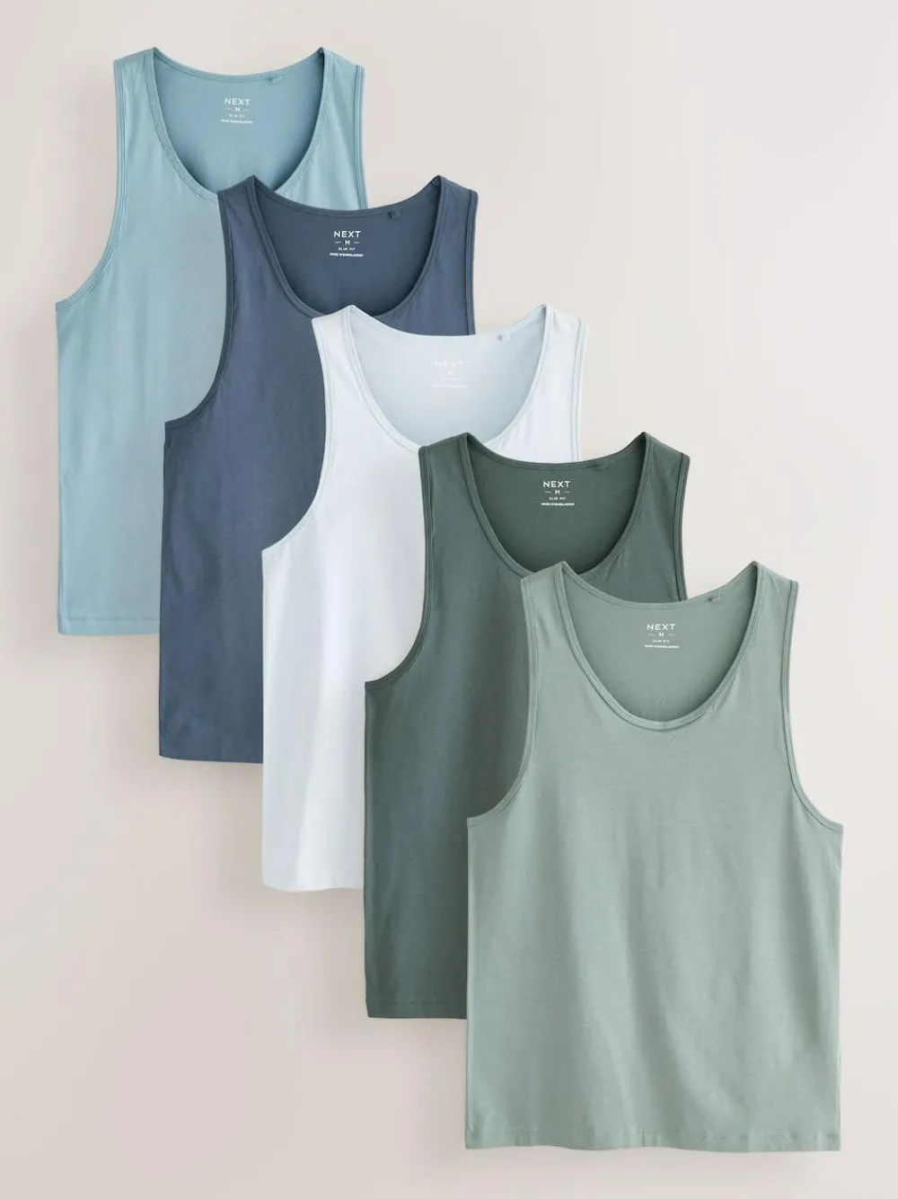 Next 100% Cotton Layering Vests 5 Pack Blue/Grey