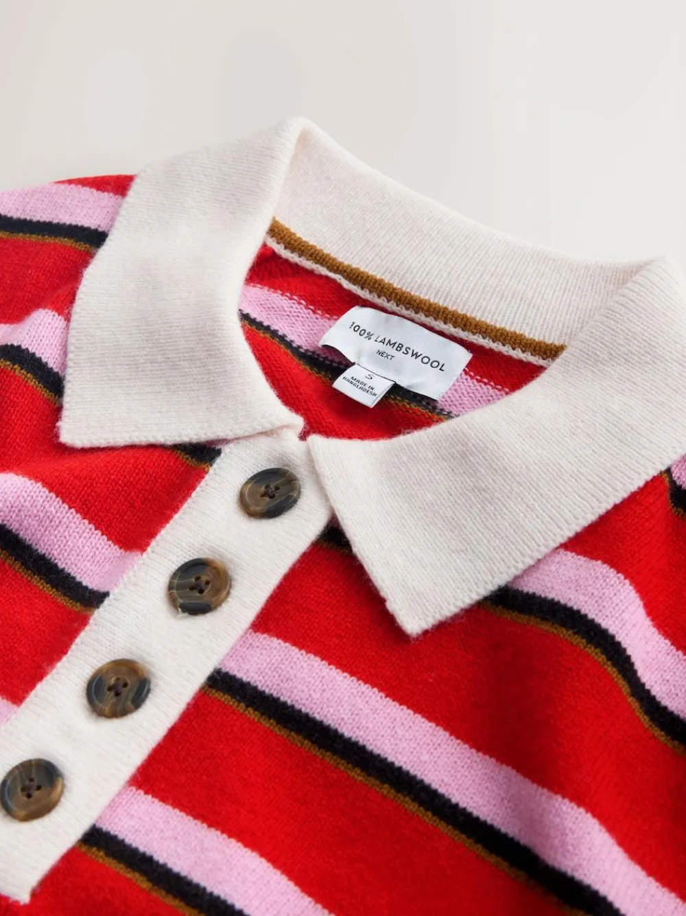Next 100% Wool N.Premium Polo Jumper Red/Pink Stripe