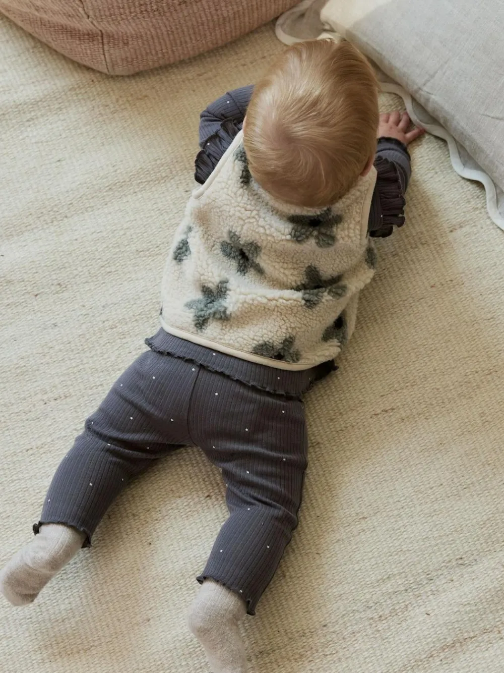 Machine washable. T-shirt and Leggings 100% Cotton. Gilet Main 100% Recycled polyester. Lining 100% Cotton. Warning: Keep away from fire and flames.