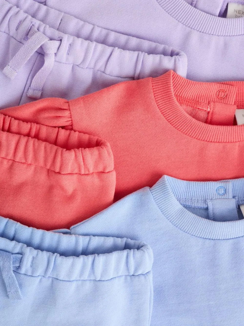 Fill their wardrobe with this six-pack of mix-and-match sweatshirts and joggers. Made in a super soft cotton fabric for extra comfort. With nickel-free poppers to ensure no irritation to delicate skin. 6 pieces set Cotton rich blend Nickel-free poppers Long sleeve sweatshirts Elasticated joggers Machine washable. Sweater, Sweater, Sweater, Jogger, Jogger and Jogger 90% Cotton, 10% Recycled polyester. Warning: Keep away from fire and flames.